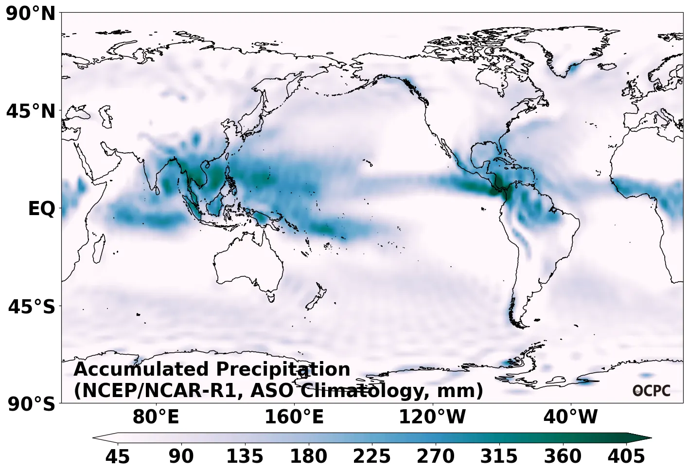 B. 전지구 누적강수량(8~10월 평년평균)