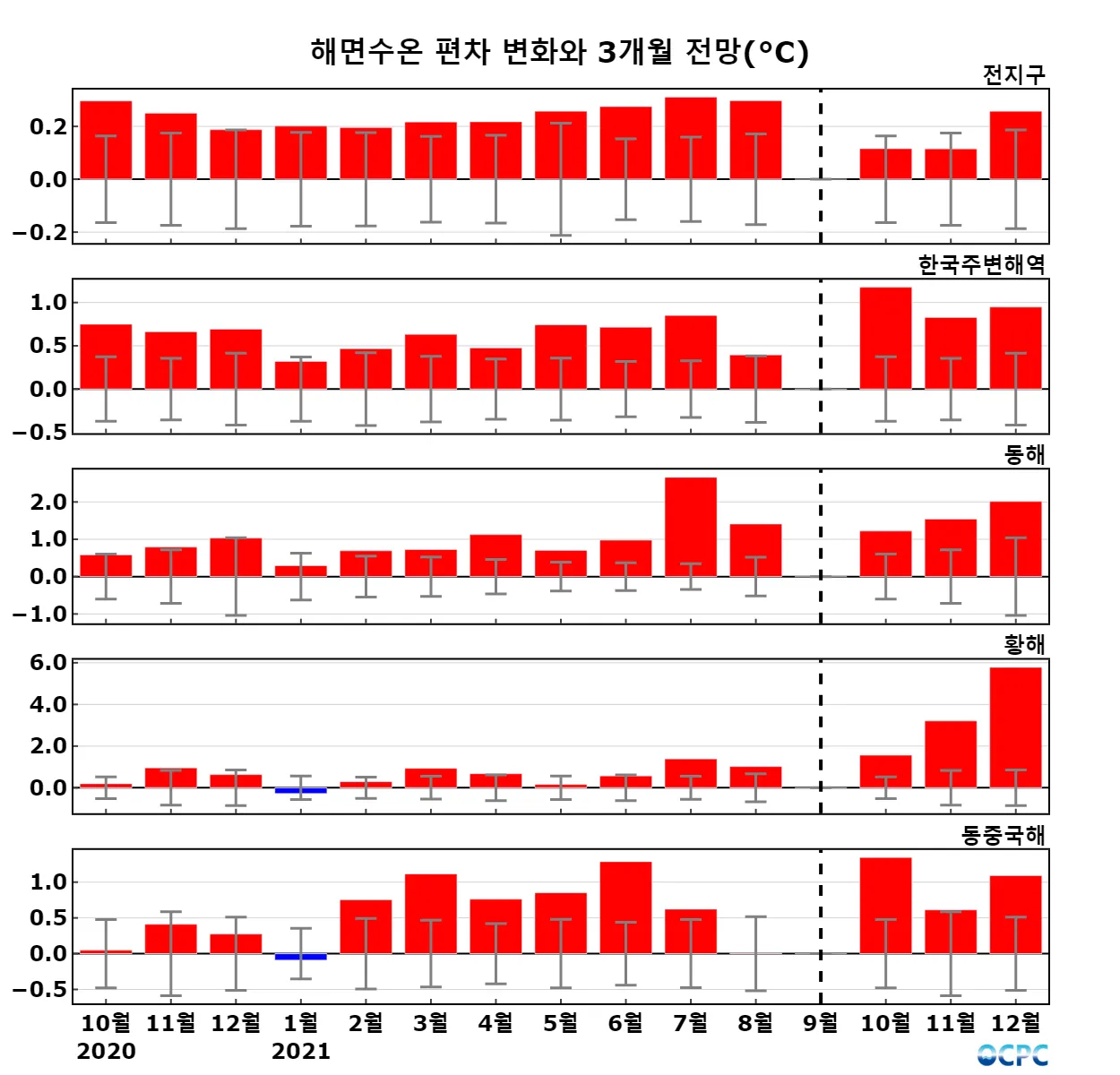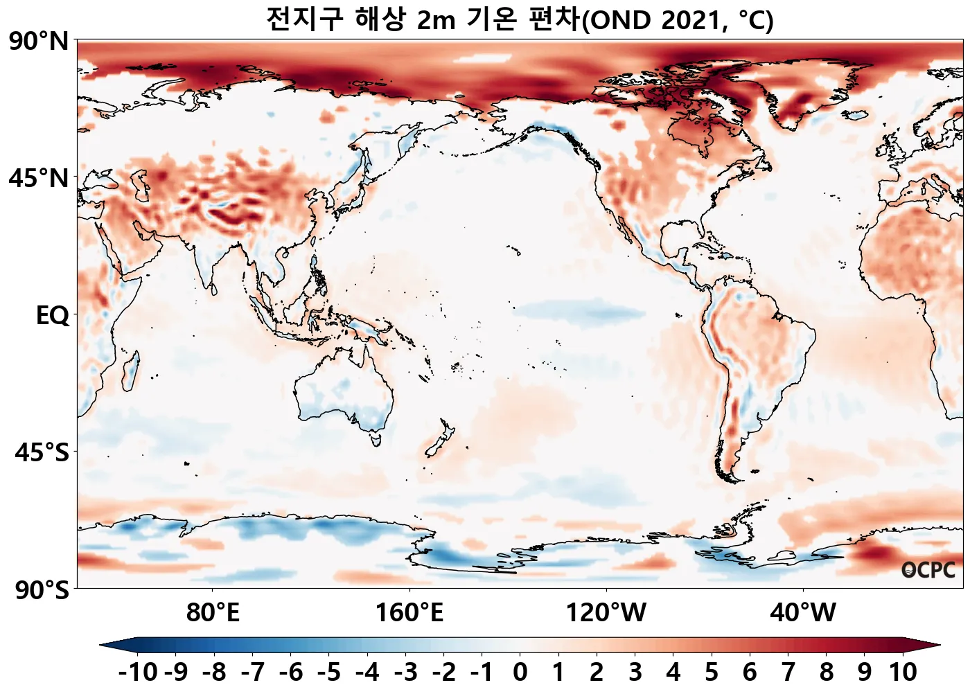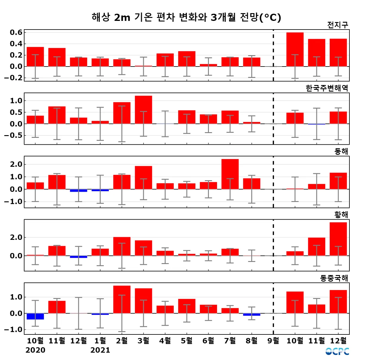 A. 전지구 해상기온 전망(2021년 10~12월 평균)