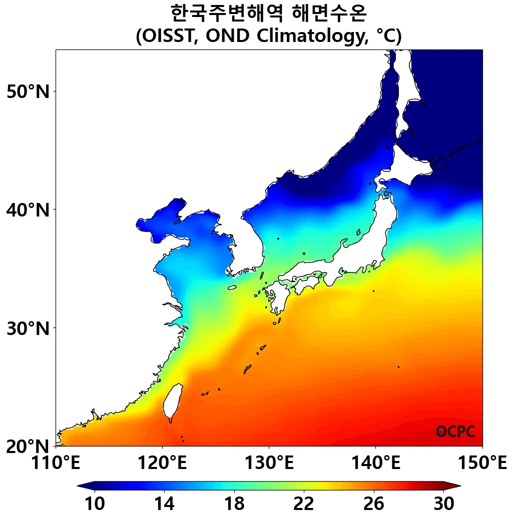 B. 한국주변해역 해면수온(10~12월 평년평균)