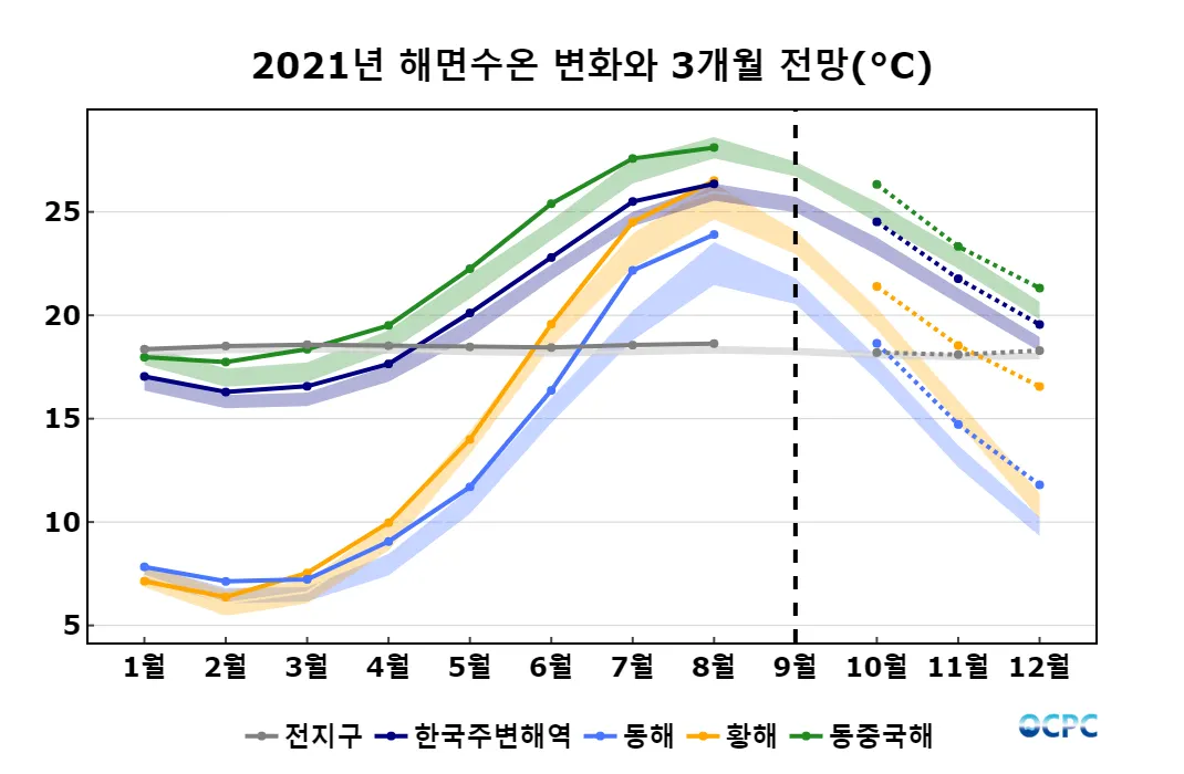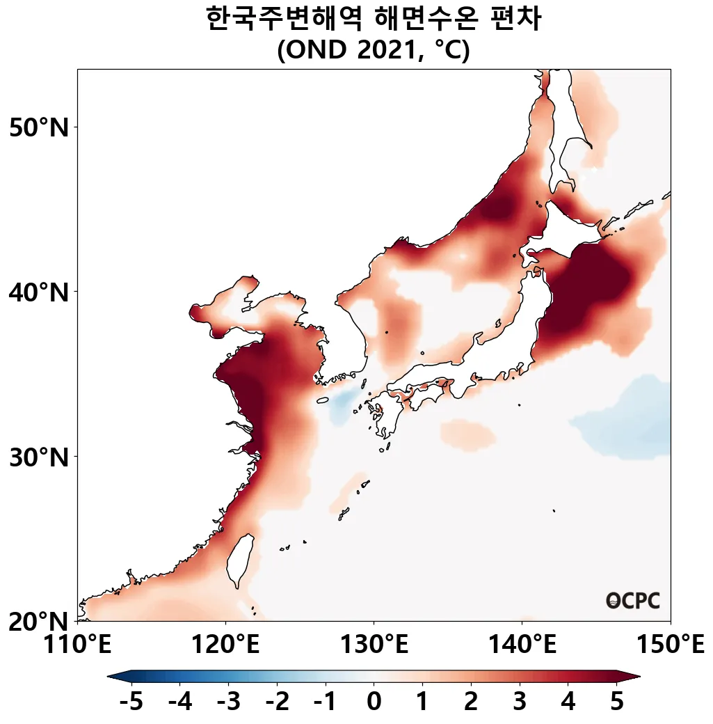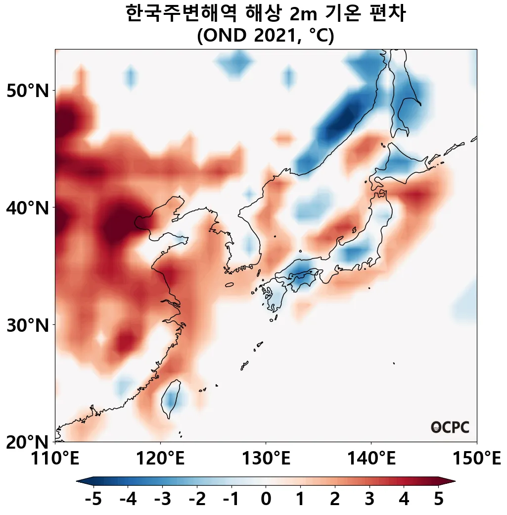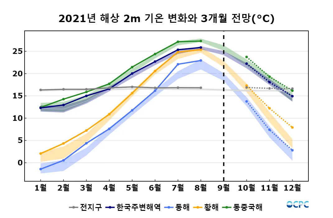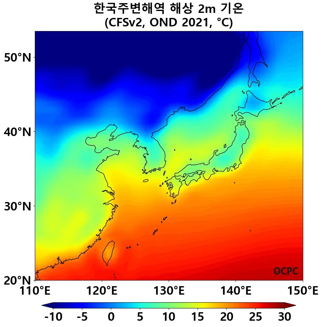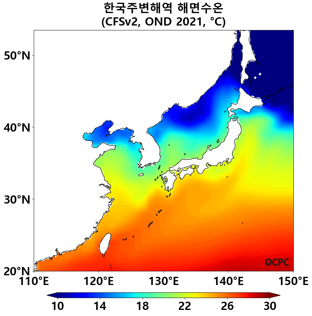 A. 한국주변해역 해상기온 전망(2021년 10~12월 평균)