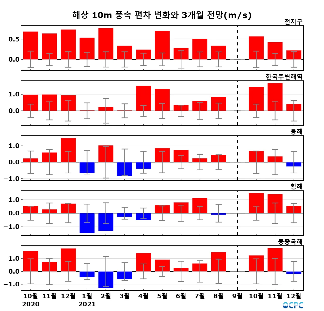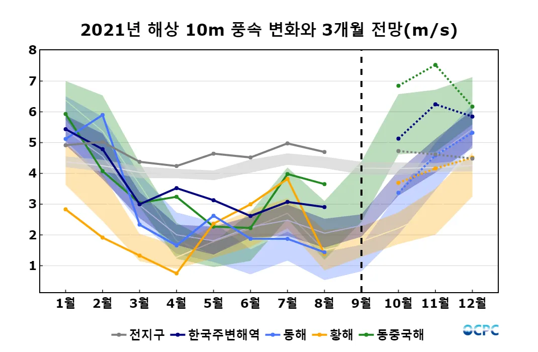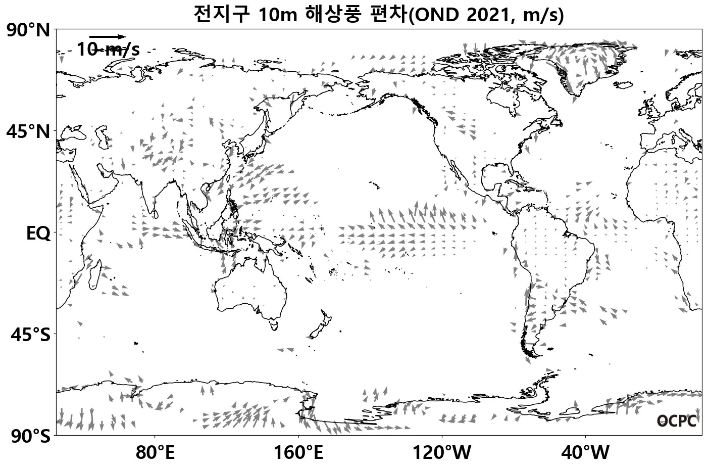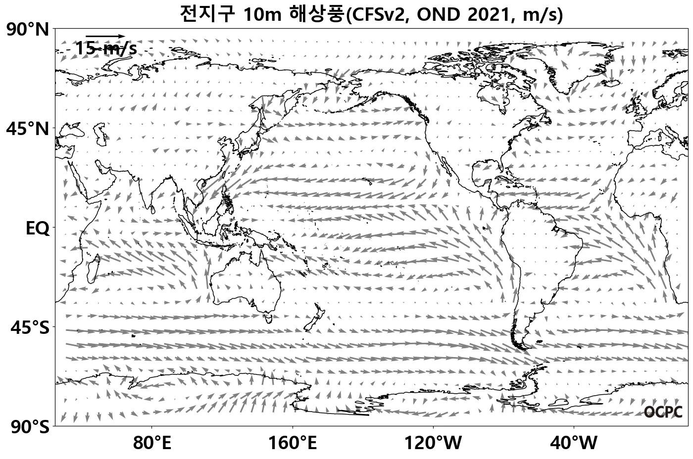 A. 전지구 해상풍 전망(2021년 10~12월 평균)