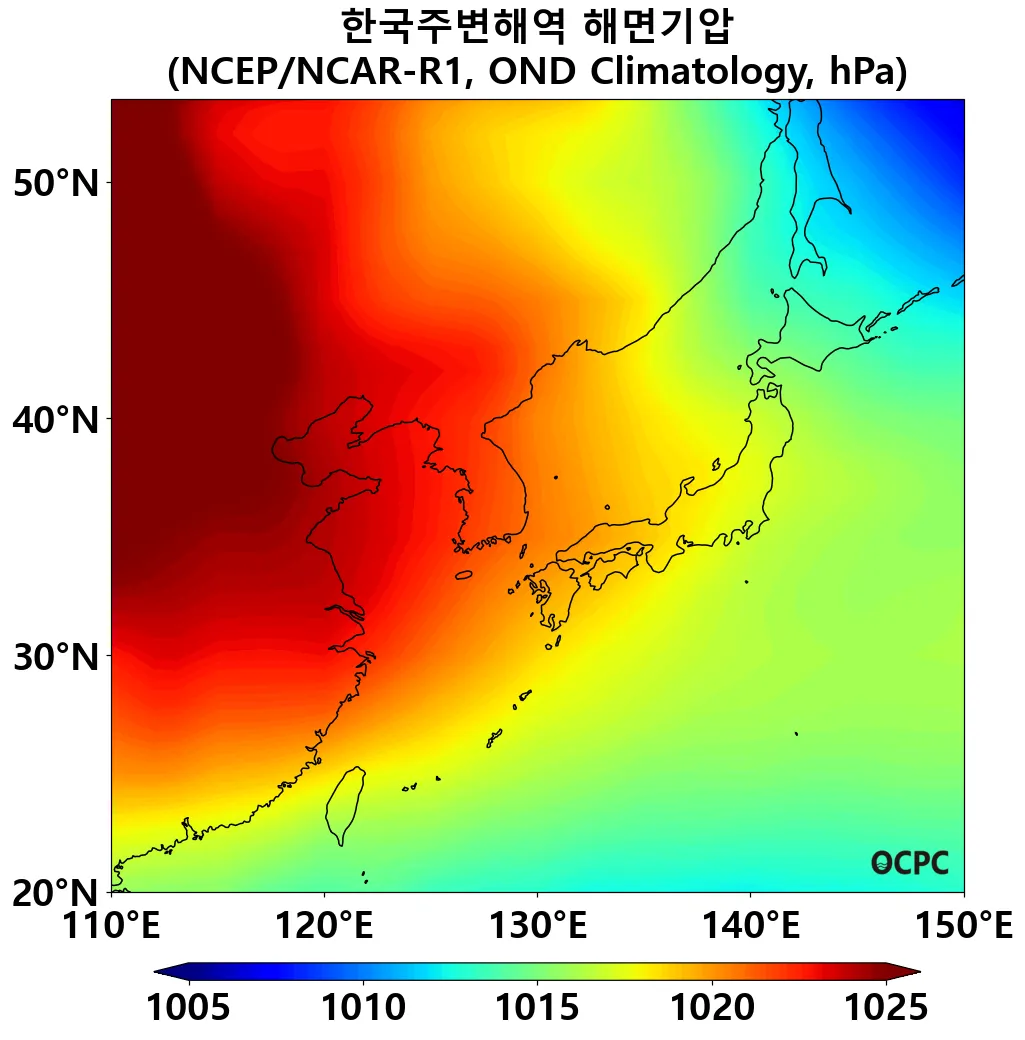 B. 한국주변해역 해면기압(10~12월 평년평균)