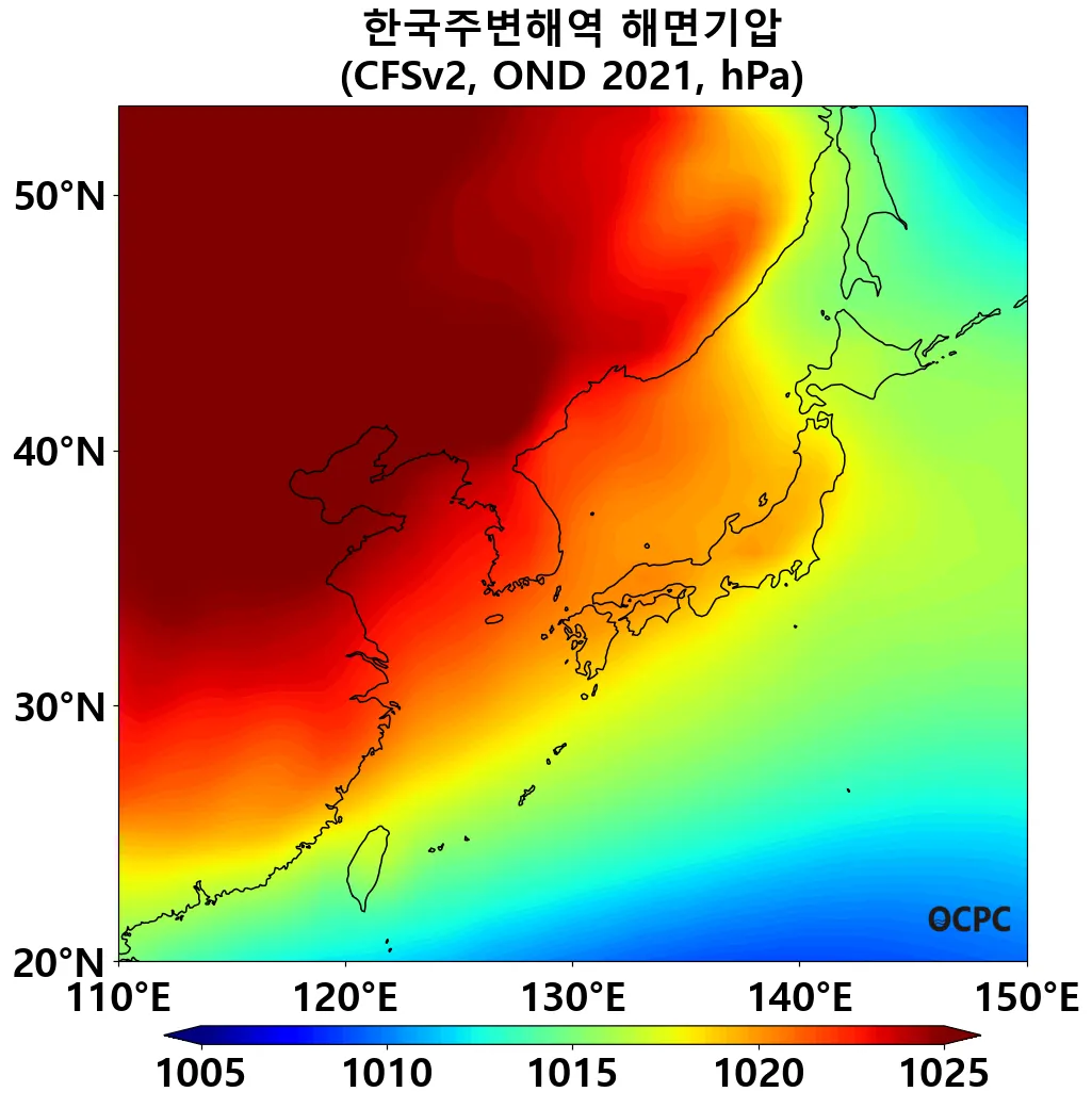 A. 한국주변해역 해면기압 전망(2021년 10~12월 평균)