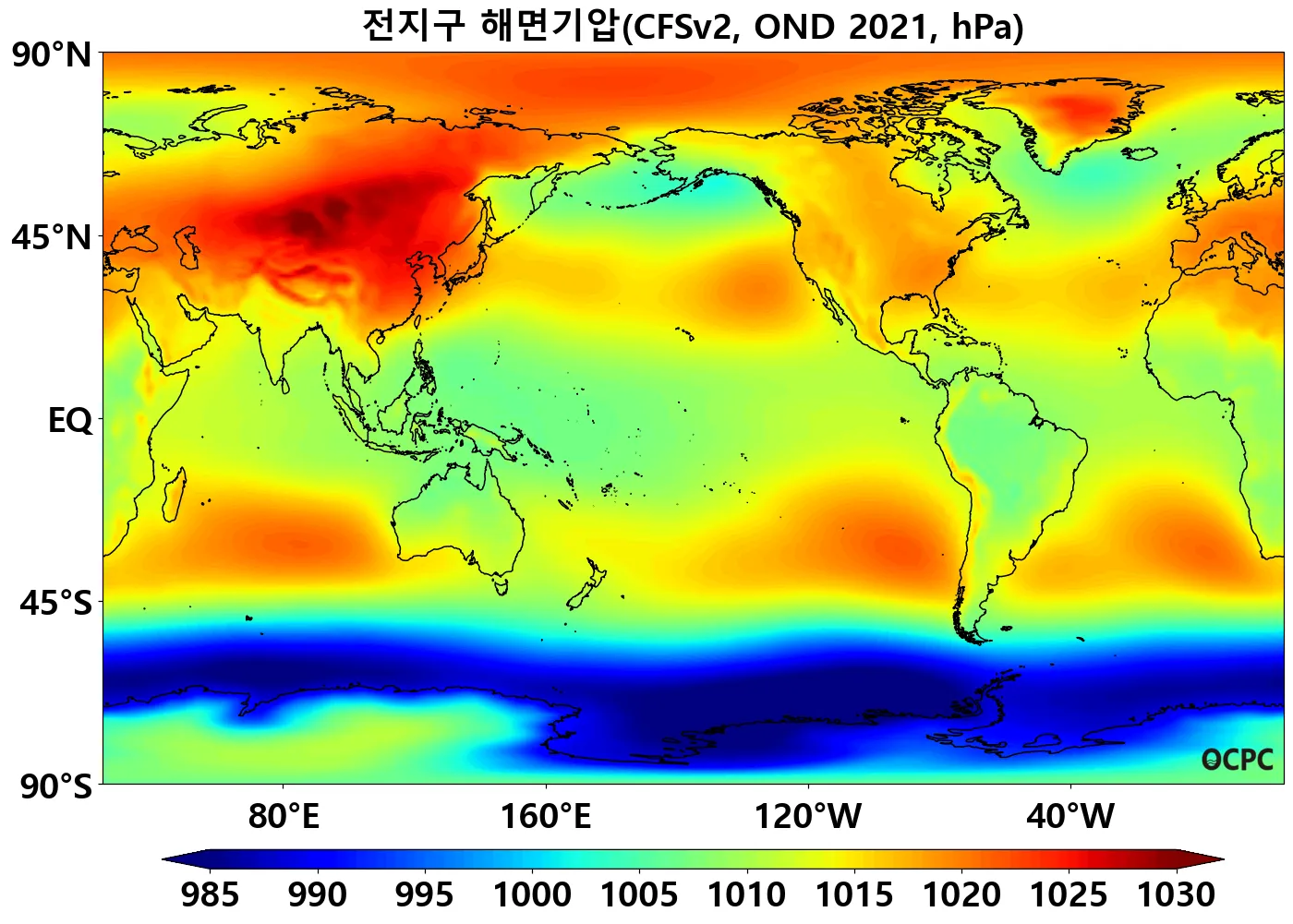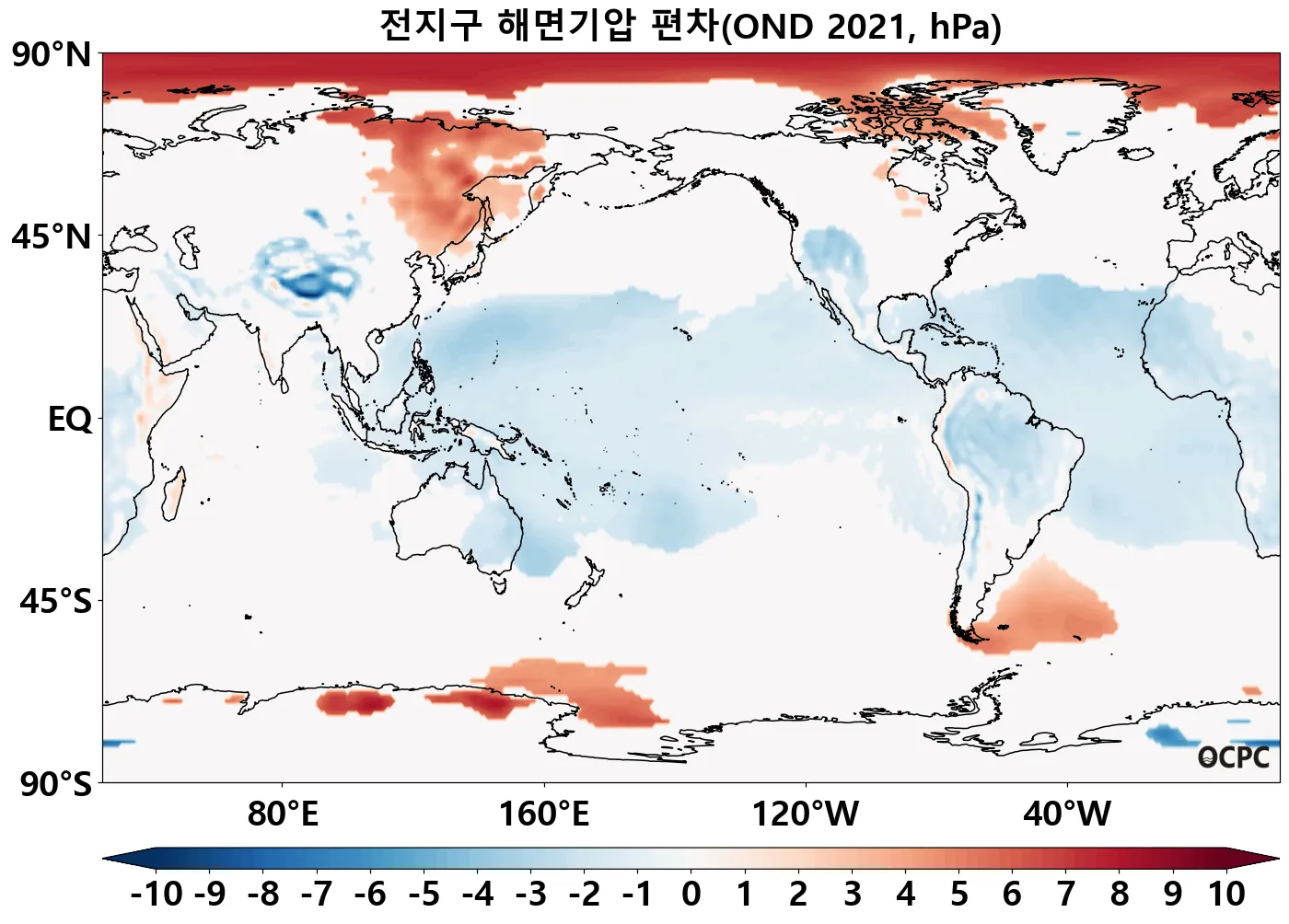 A. 전지구 해면기압 전망(2021년 10~12월 평균)