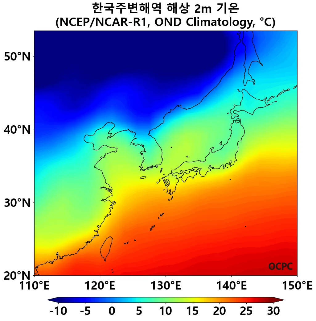 B. 한국주변해역 해상기온(10~12월 평년평균)