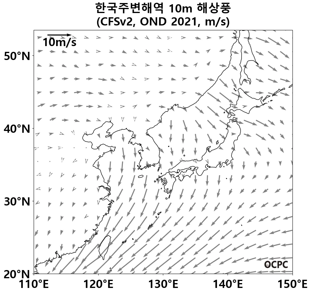 A. 한국주변해역 해상풍 전망(2021년 10~12월 평균)