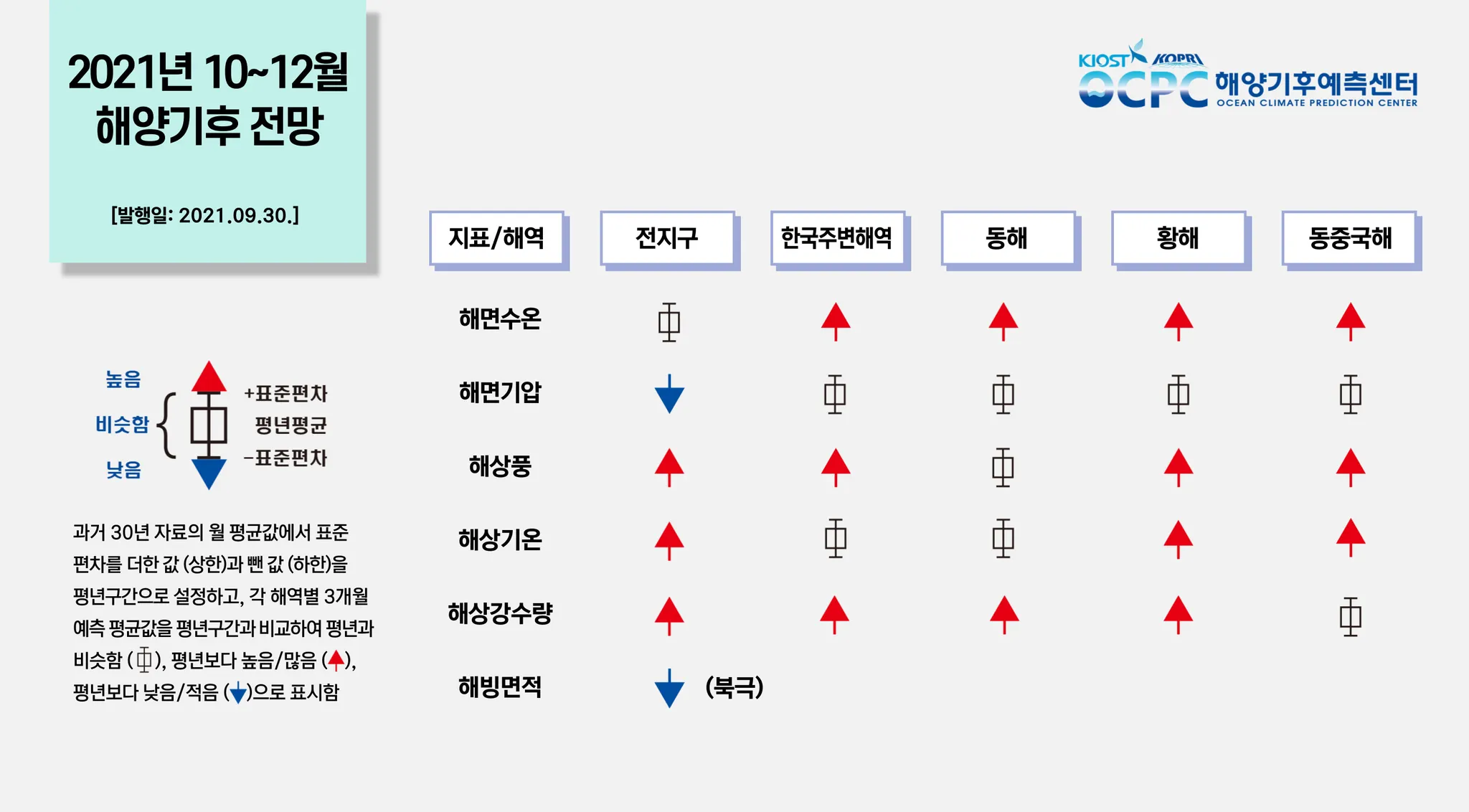 황해, 동중국해의 해상풍은 평년보다 강하겠으며, 동해는 평년과 비슷하겠습니다.