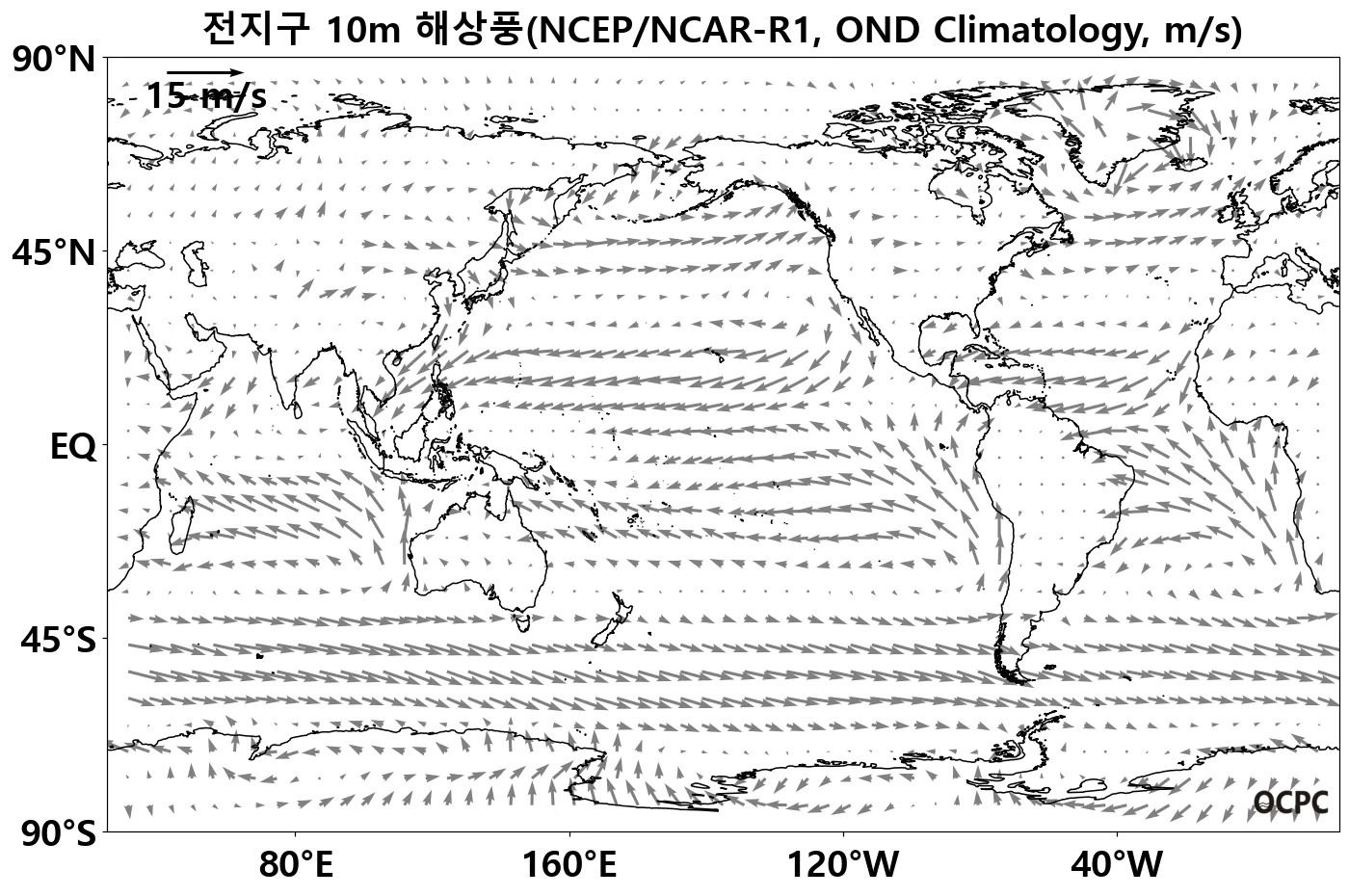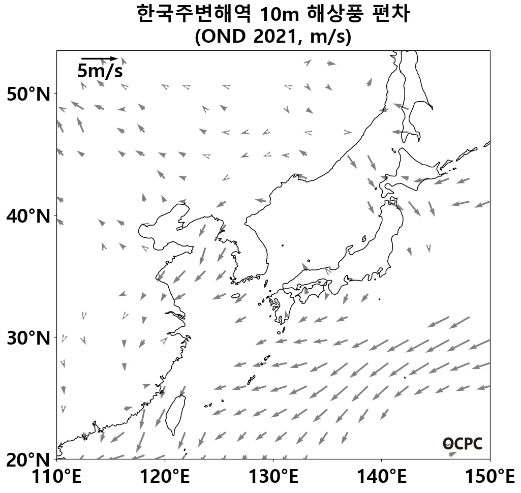 ○ (해상풍) 전지구, 한국주변해역, 황해, 동중국해의 해상풍은 평년보다 강하겠으며, 동해는 평년과 비슷하겠습니다.