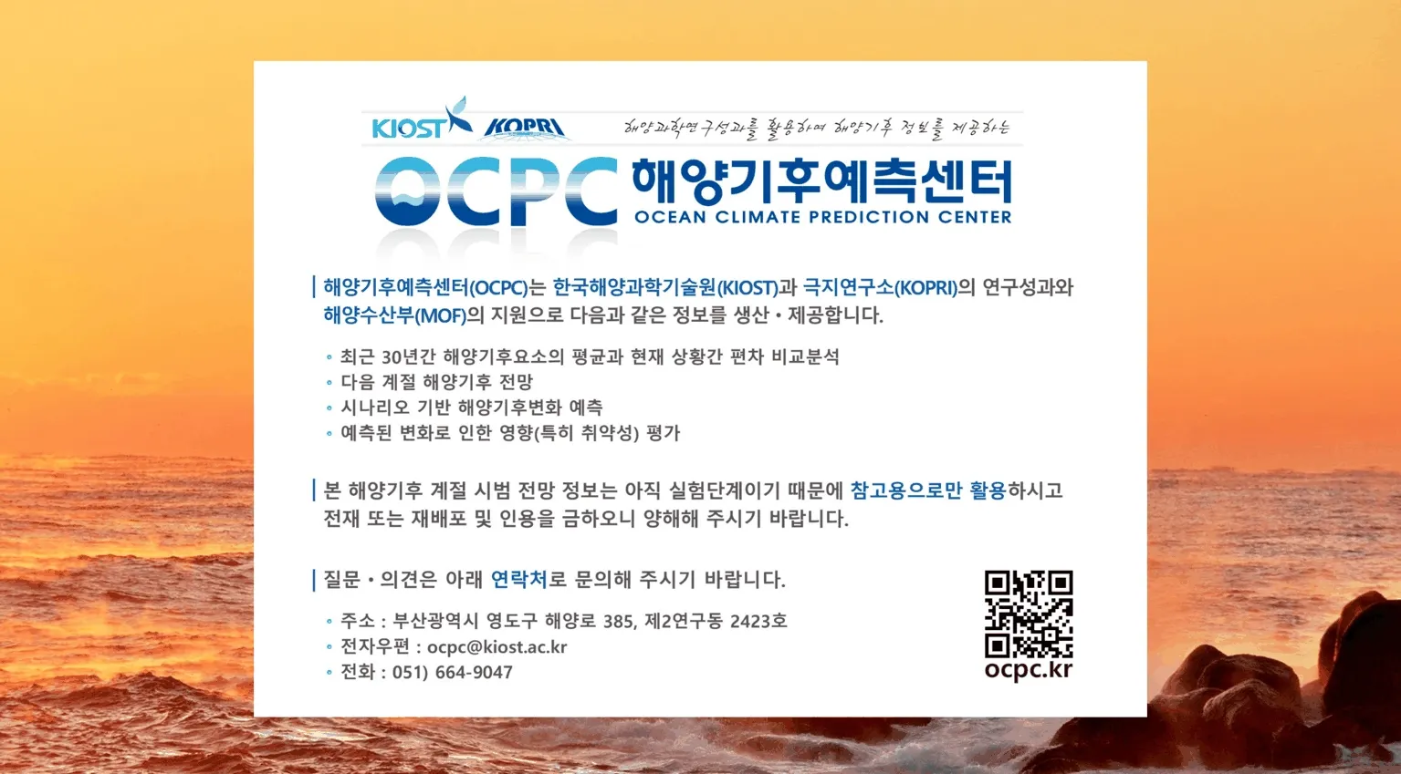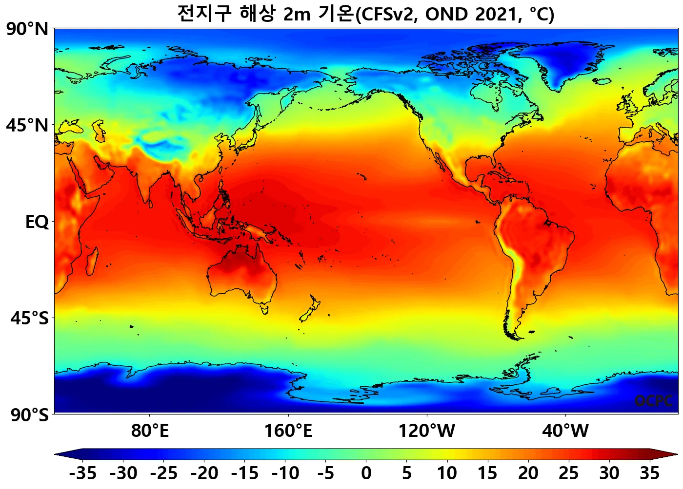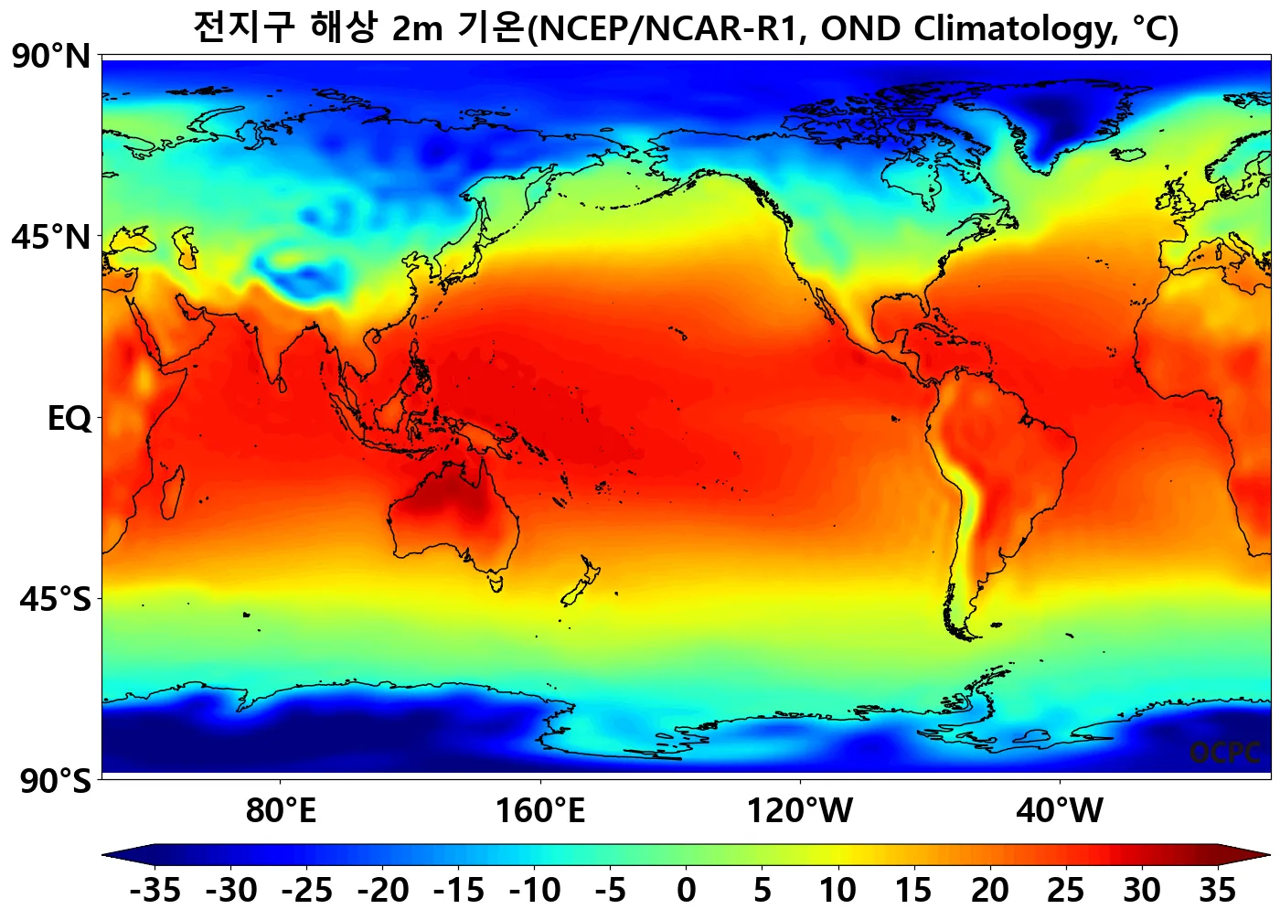 전지구 평균 해상기온은 평년보다 높겠으나, 열대 동태평양은 평년보다 낮겠습니다.