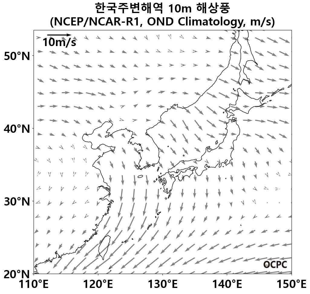 B. 한국주변해역 해상풍(10~12월 평년평균)