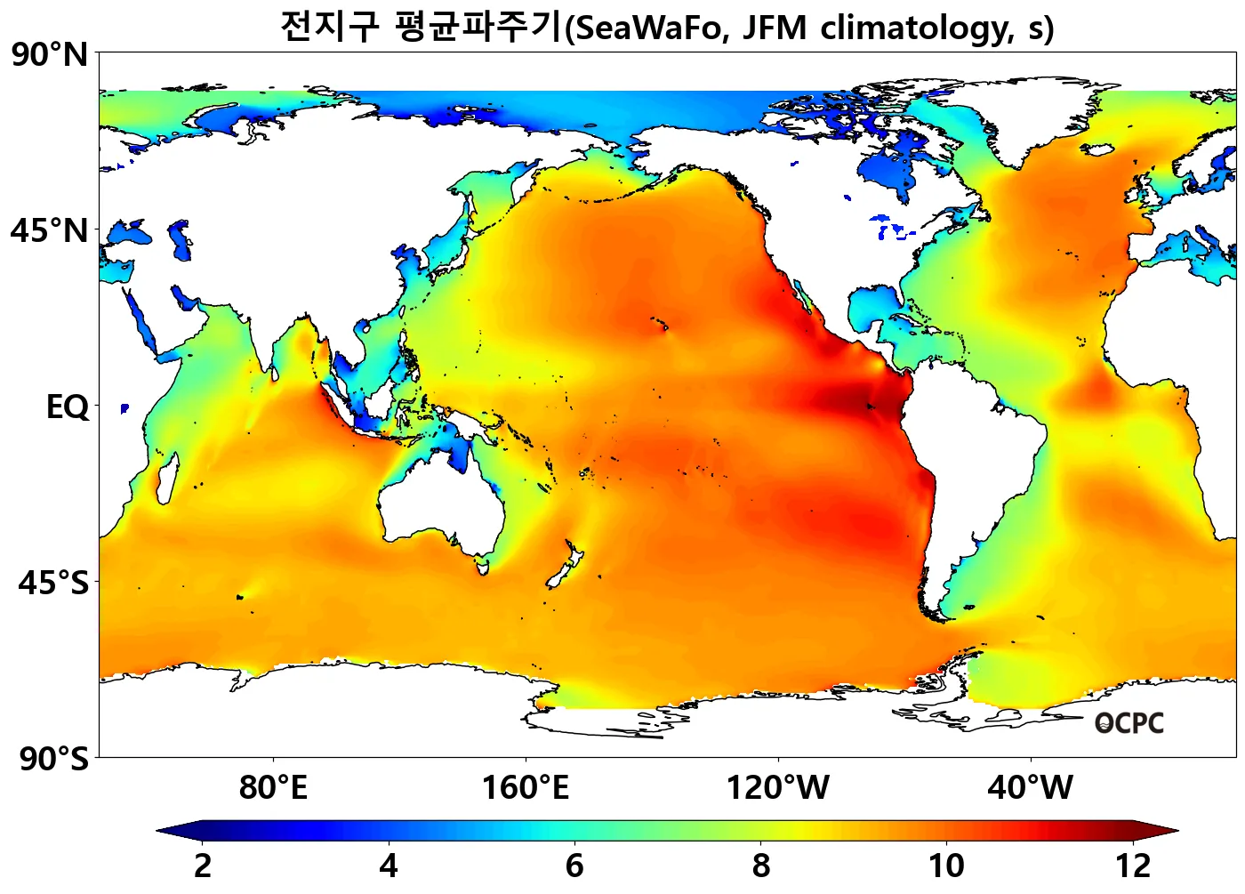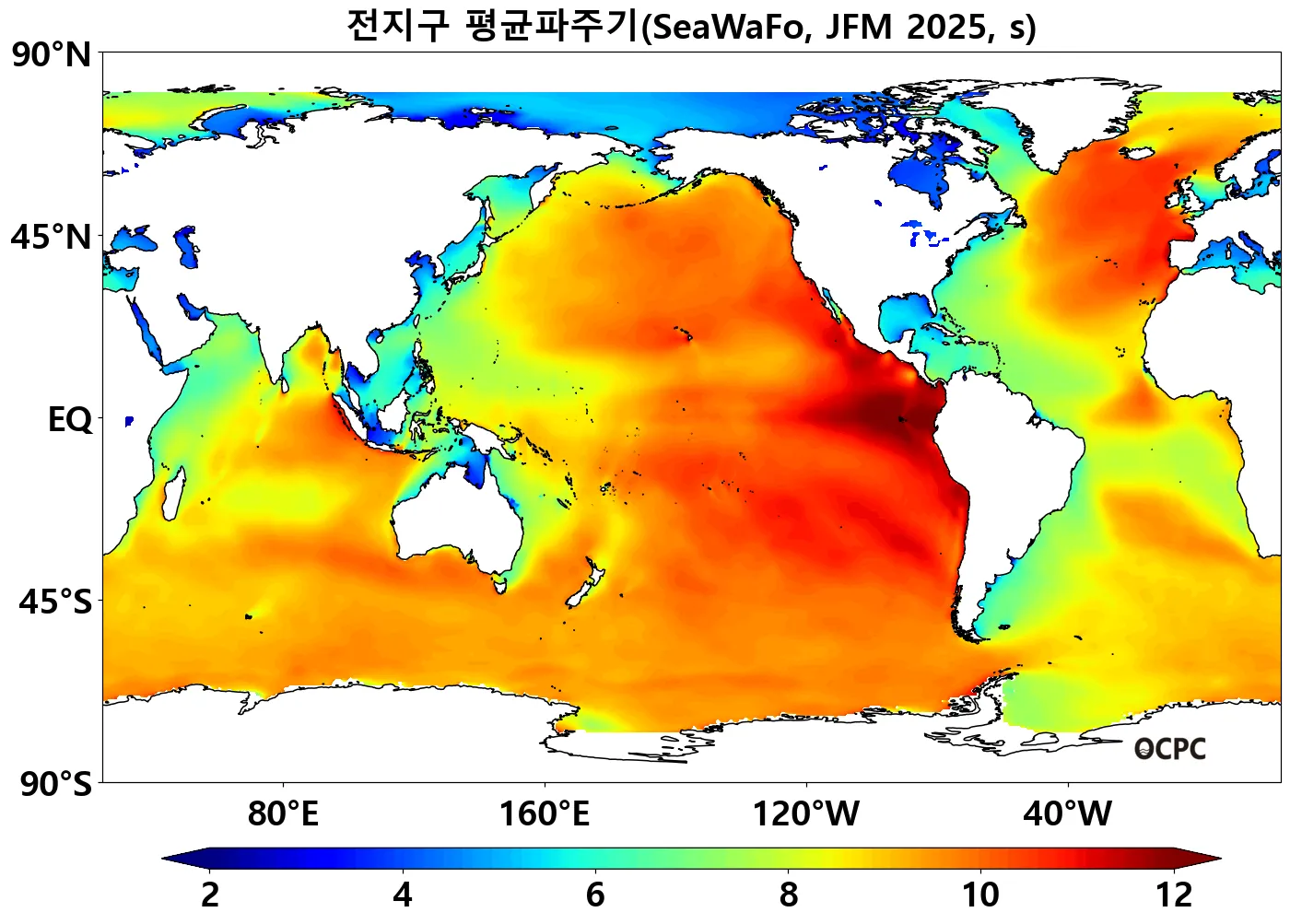전지구 1~3월 평균파주기는 평년(8.82±0.05초)과 비슷할 것으로 전망됩니다.