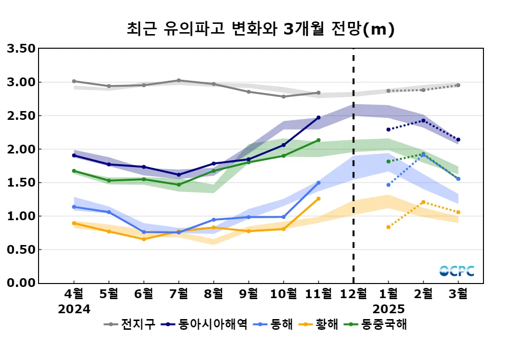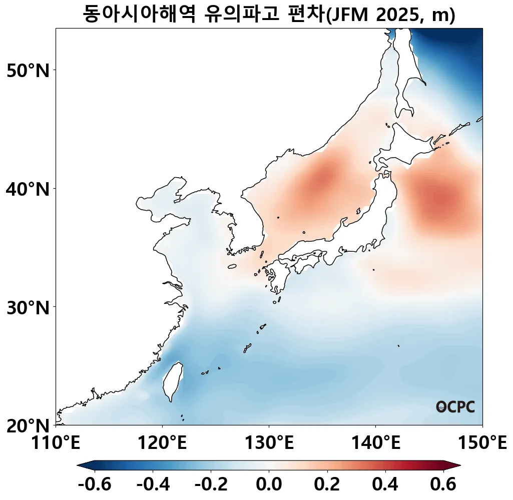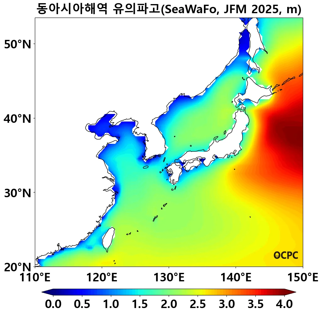 A. 동아시아해역 유의파고 전망(2025년 1월~3월 평균)