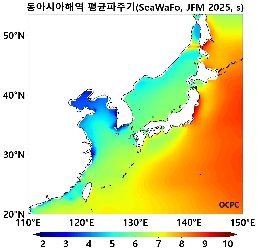 A. 동아시아해역 평균파주기 전망(2025년 1월~3월 평균)