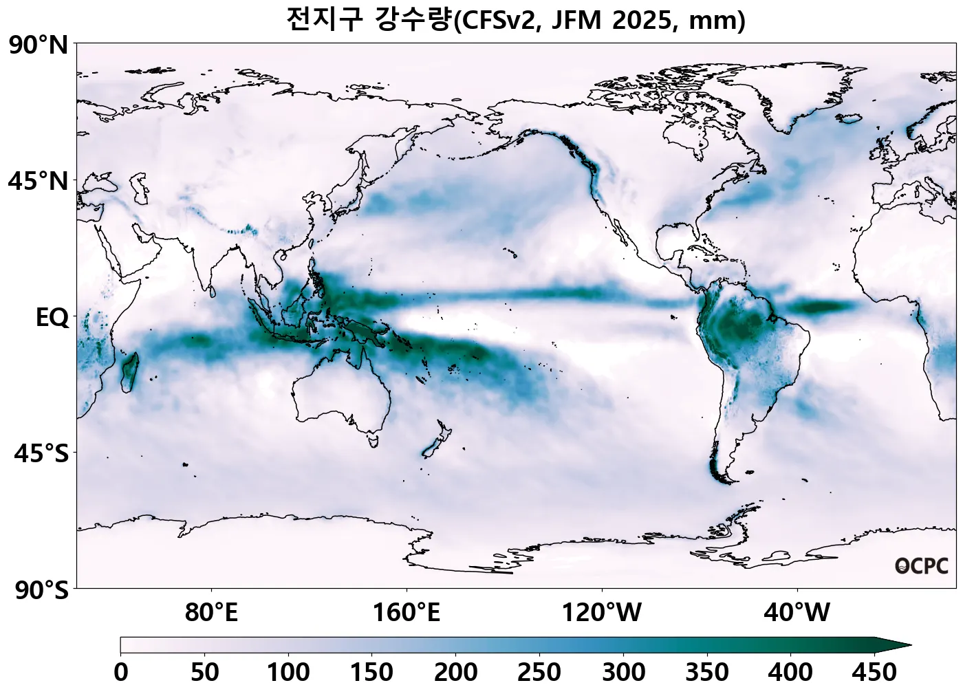 A. 전지구 강수량 전망(2025년 1월~3월 평균)