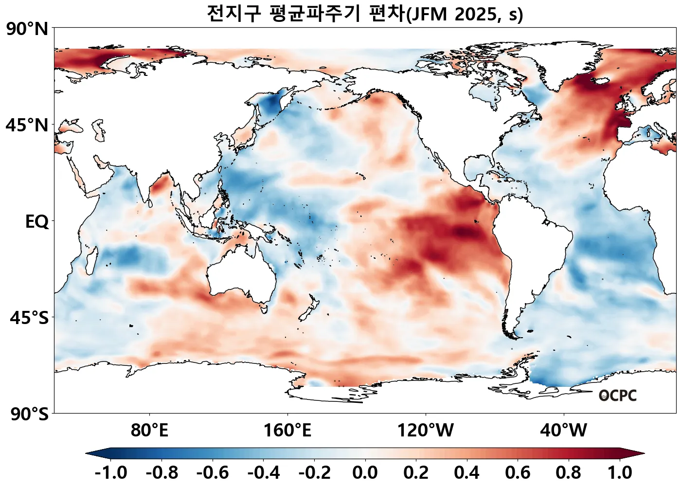 A. 전지구 평균파주기 전망(2025년 1월~3월 평균)