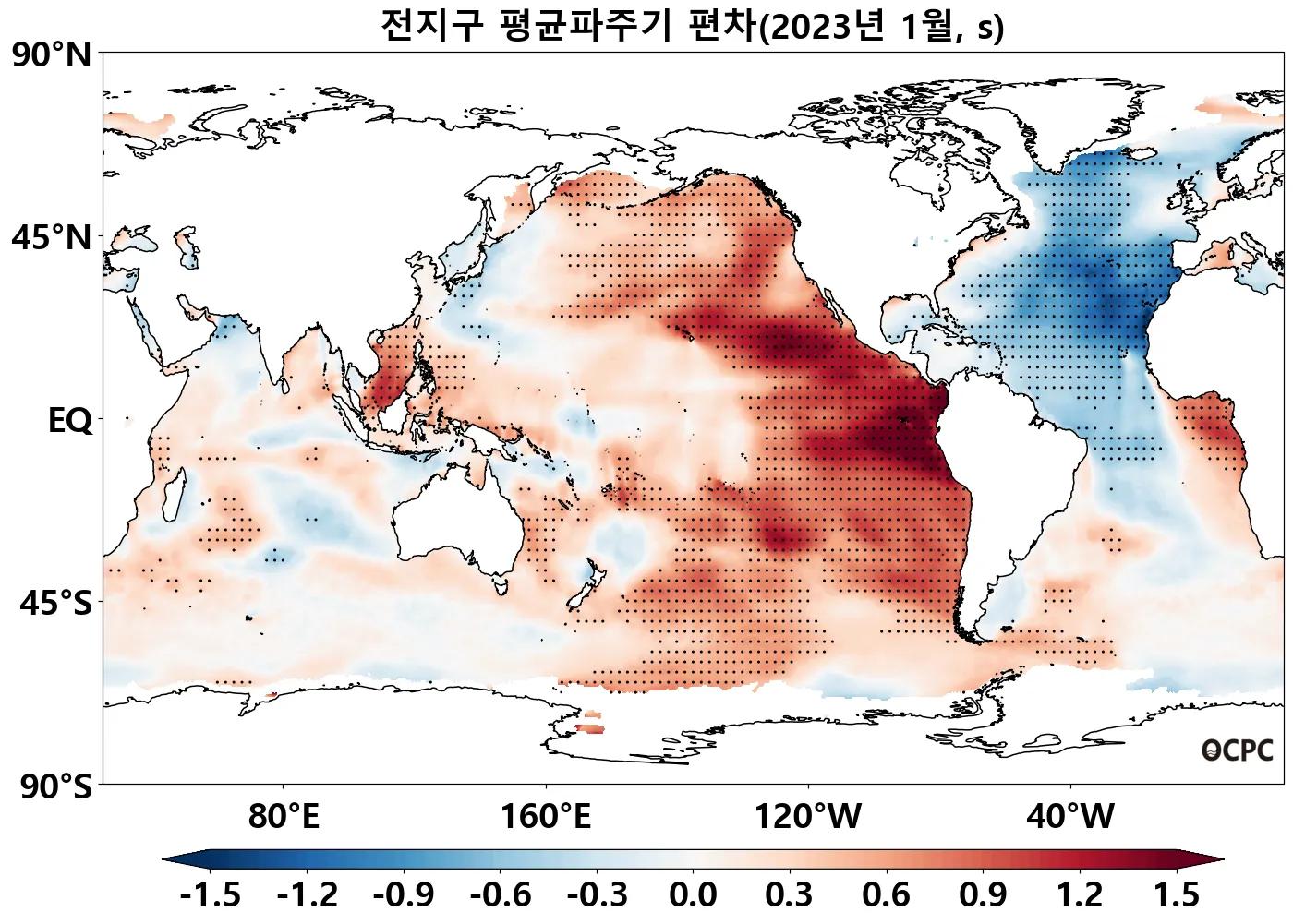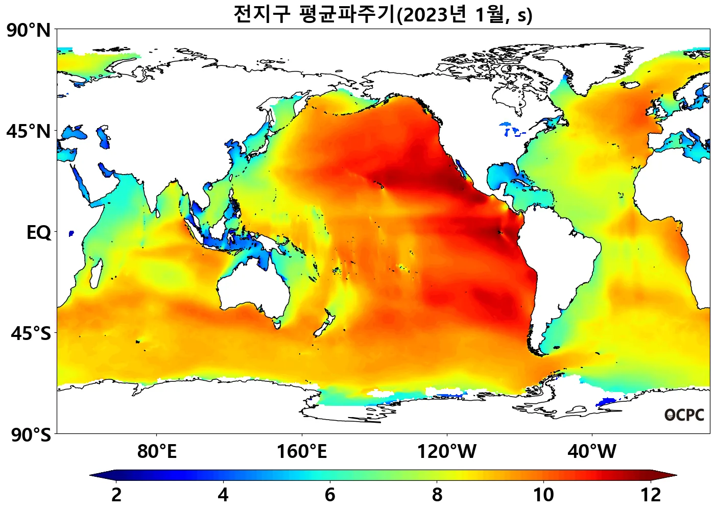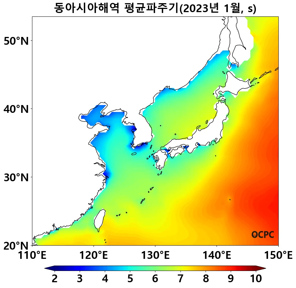 [평균파주기] 전지구, 동아시아해역, 동해, 황해, 동중국해의 평균파주기는 평년과 비슷했습니다.