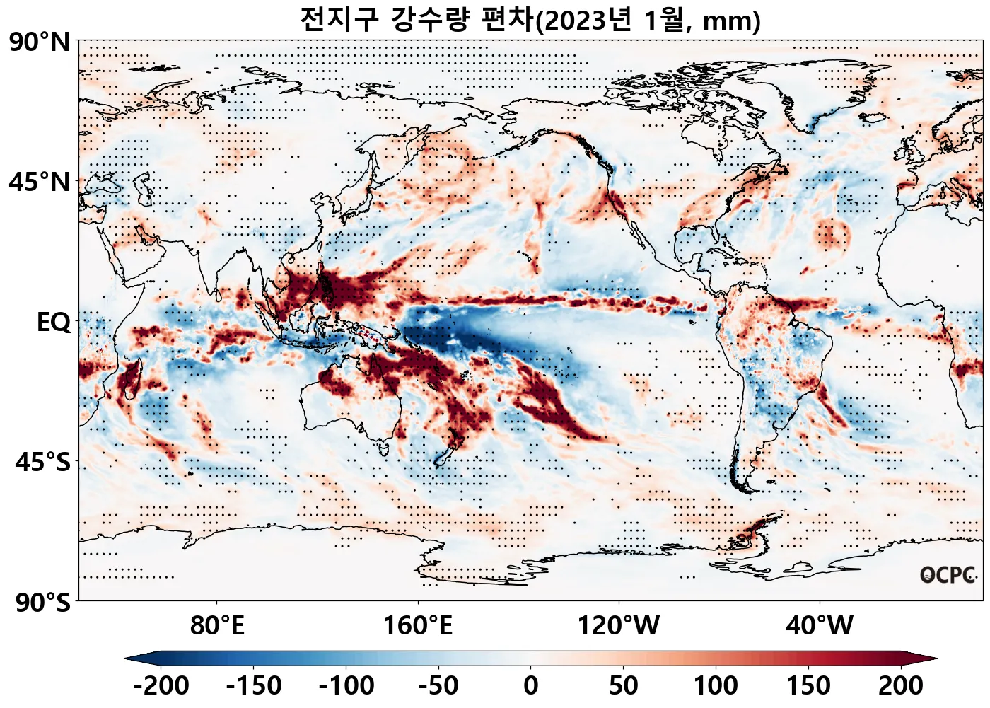 엘니뇨/라니냐 감시구역인 열대태평양 Nino3.4 해역(5°S~5°N, 170°W~120°W)의 1월 평균 해면수온 편차(-0.7°C)는 라니냐에 해당합니다.