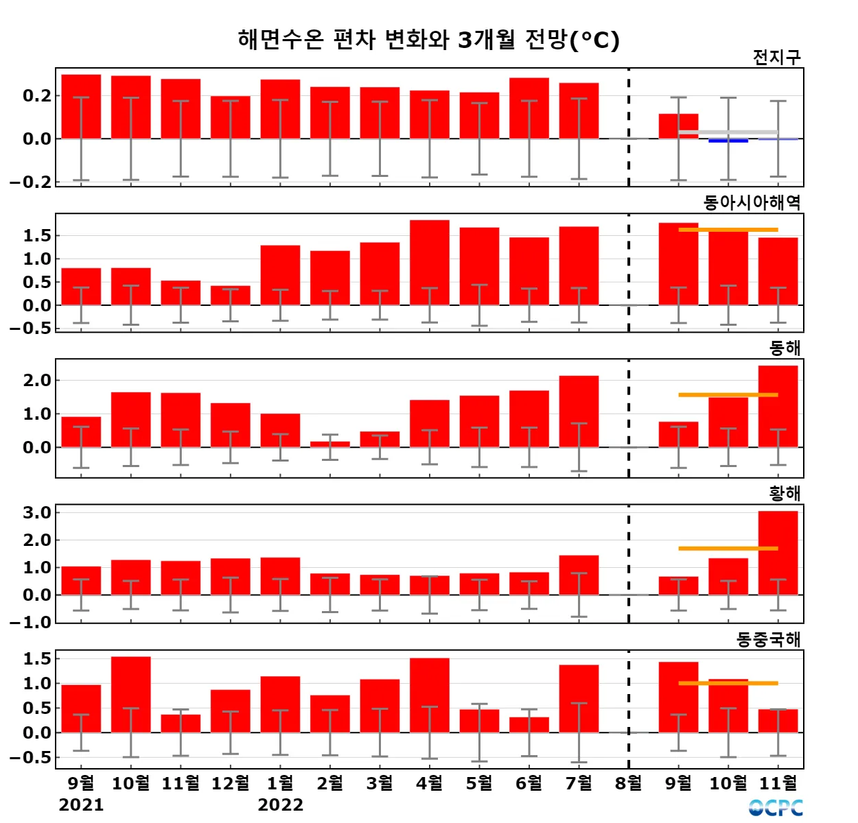 A. 동아시아해역 해면수온 전망(2022년 9~11월 평균)