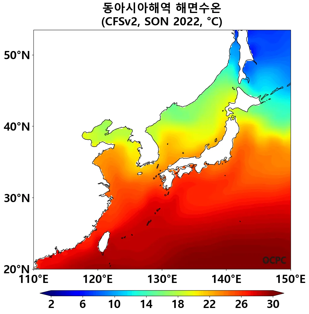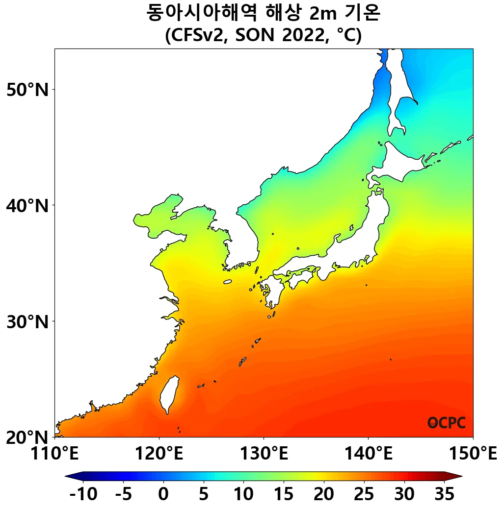 A. 동아시아해역 해상기온 전망(2022년 9~11월 평균)