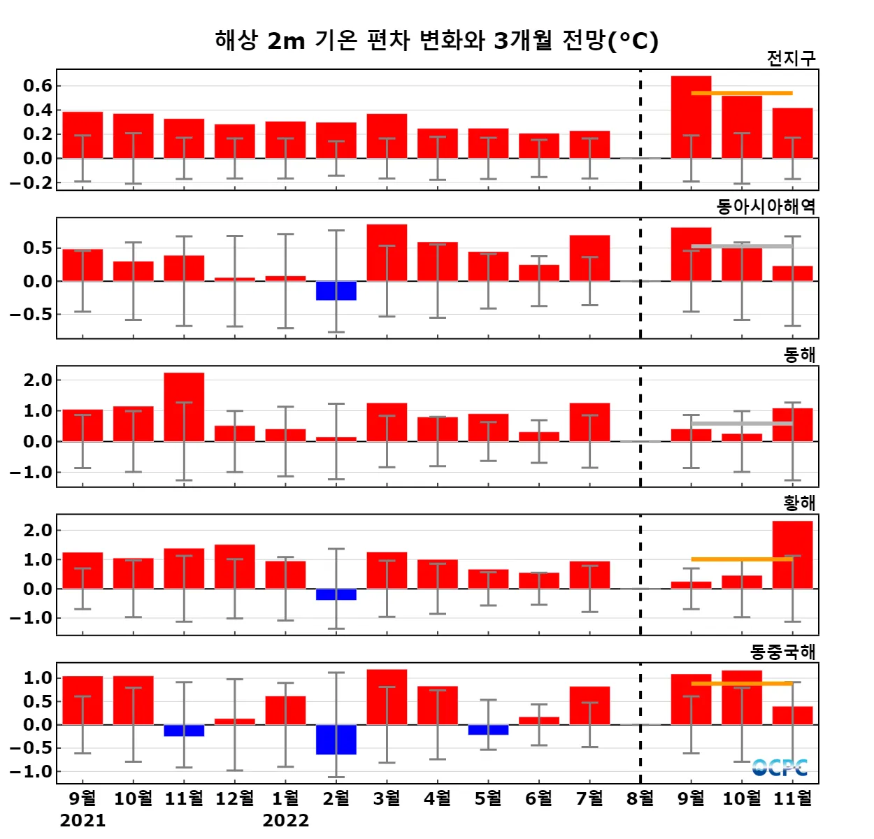 A. 전지구 해상기온 전망(2022년 9~11월 평균)