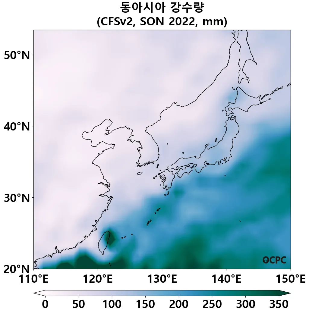 A. 동아시아 강수량 전망(2022년 9~11월 평균)