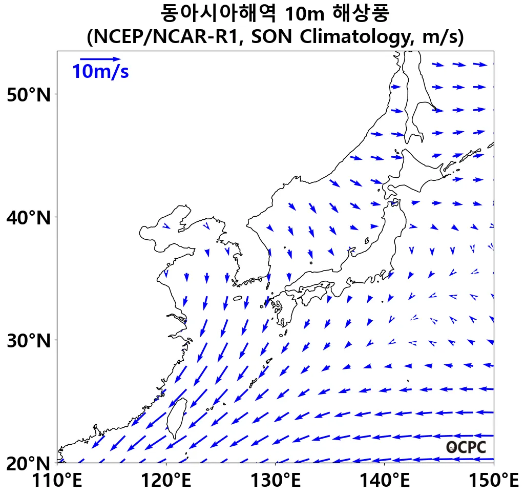 B. 동아시아해역 해상풍(9~11월 평년평균)