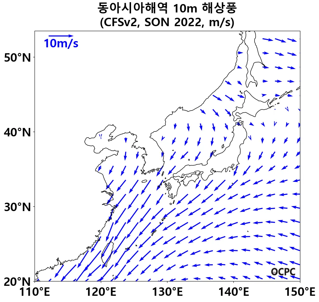 A. 동아시아해역 해상풍 전망(2022년 9~11월 평균)
