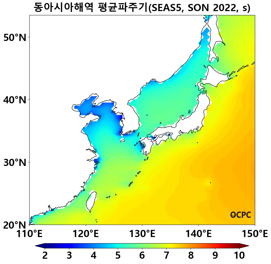 A. 동아시아해역 평균파주기 전망(2022년 9~11월 평균)