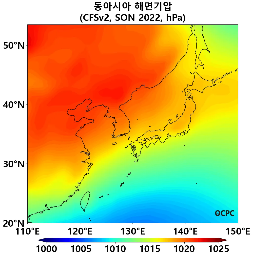 A. 동아시아 해면기압 전망(2022년 9~11월 평균)