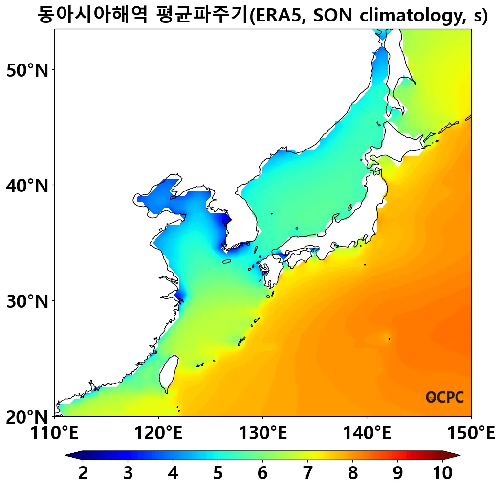 B. 동아시아해역 평균파주기(9~11월 평년평균)