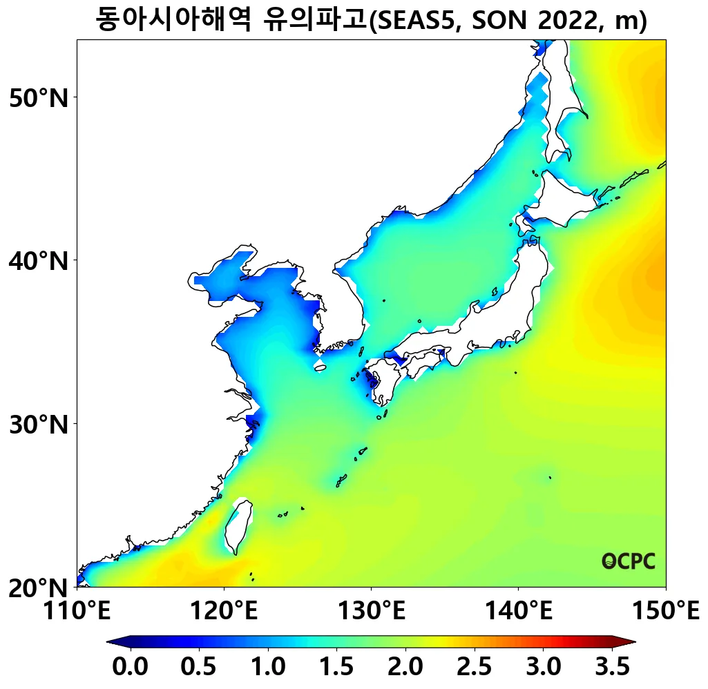 A. 동아시아해역 유의파고 전망(2022년 9~11월 평균)