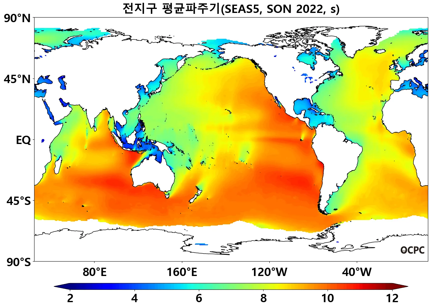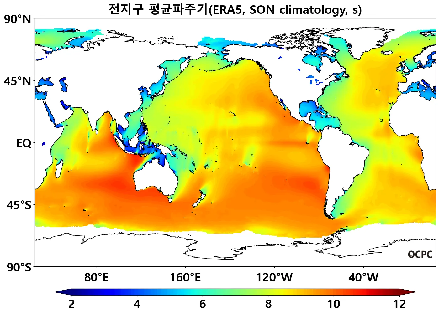 전지구, 동아시아해역의 평균파주기는 평년과 비슷할 것으로 전망됩니다.