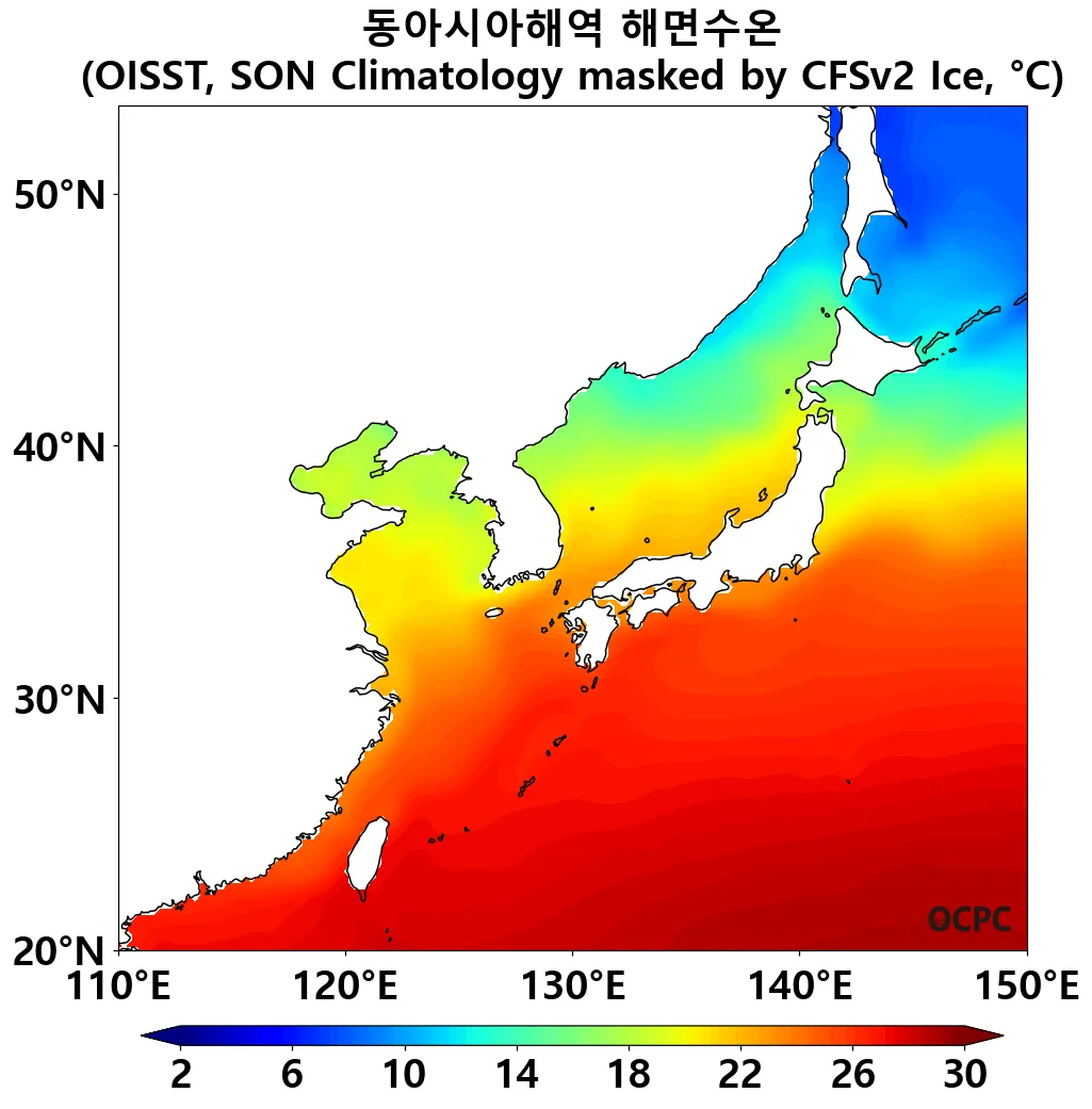 B. 동아시아해역 해상기온(9~11월 평년평균)