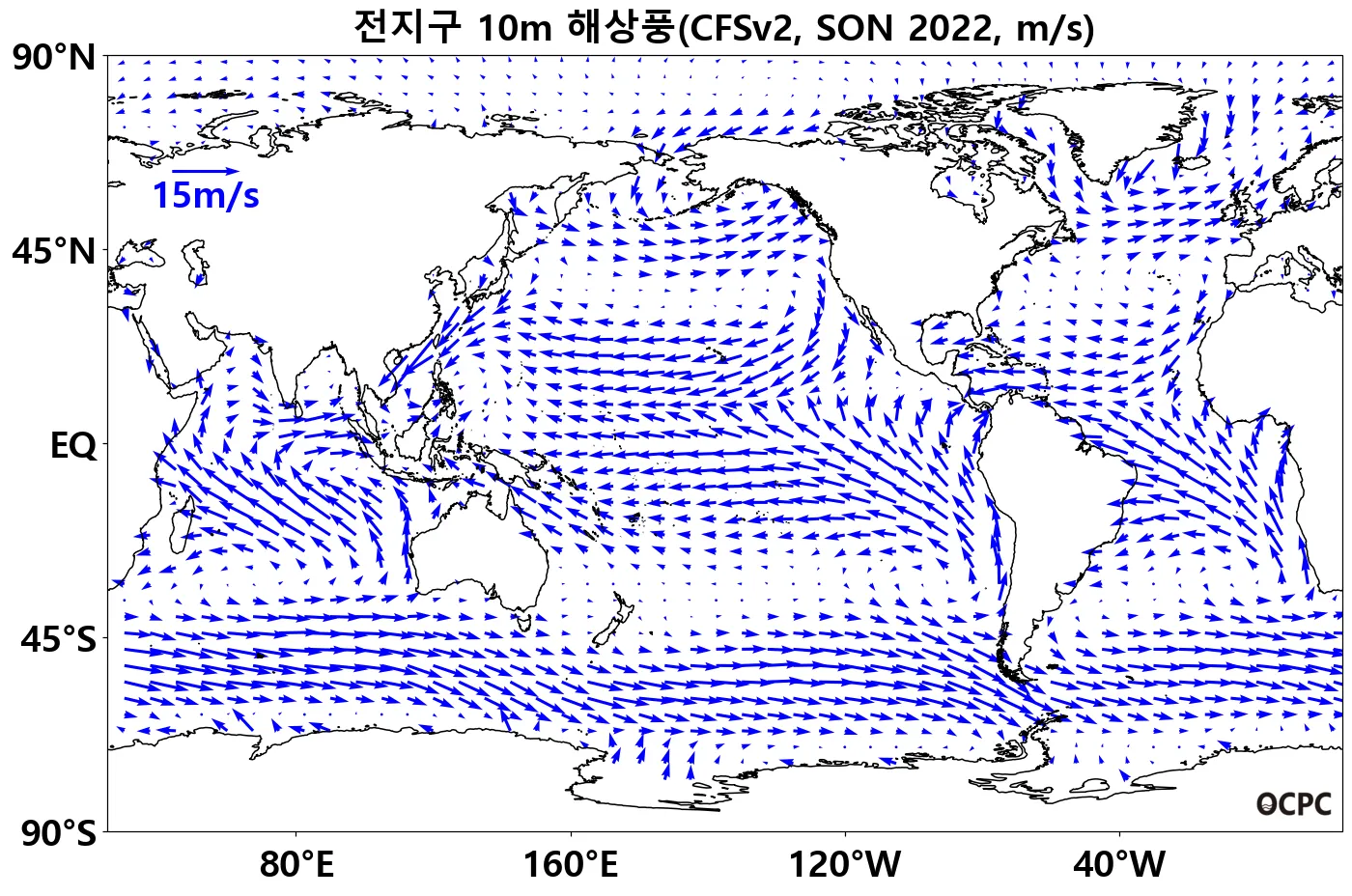 A. 전지구 해상풍 전망(2022년 9~11월 평균)