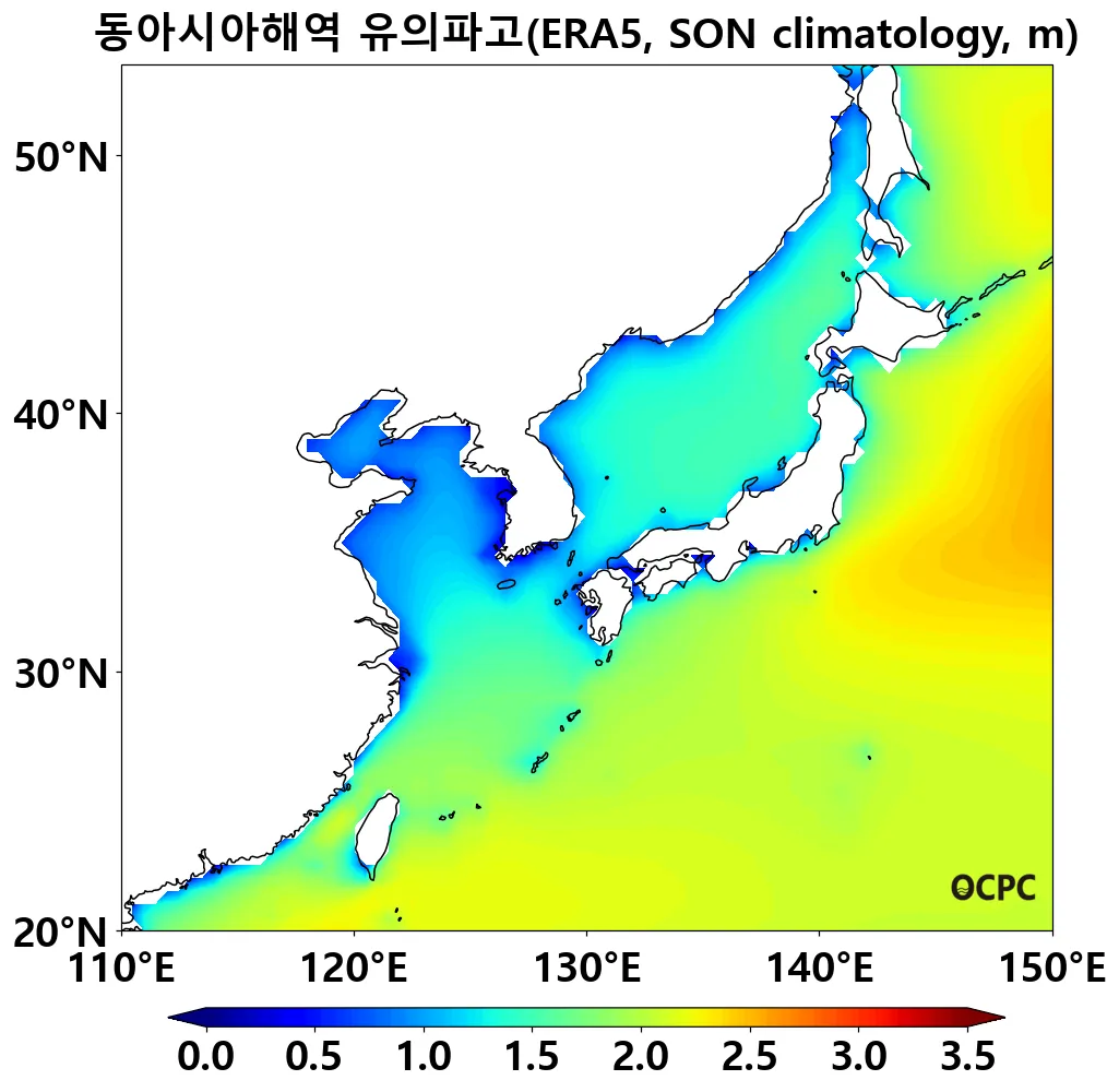B. 동아시아해역 유의파고(9~11월 평년평균)