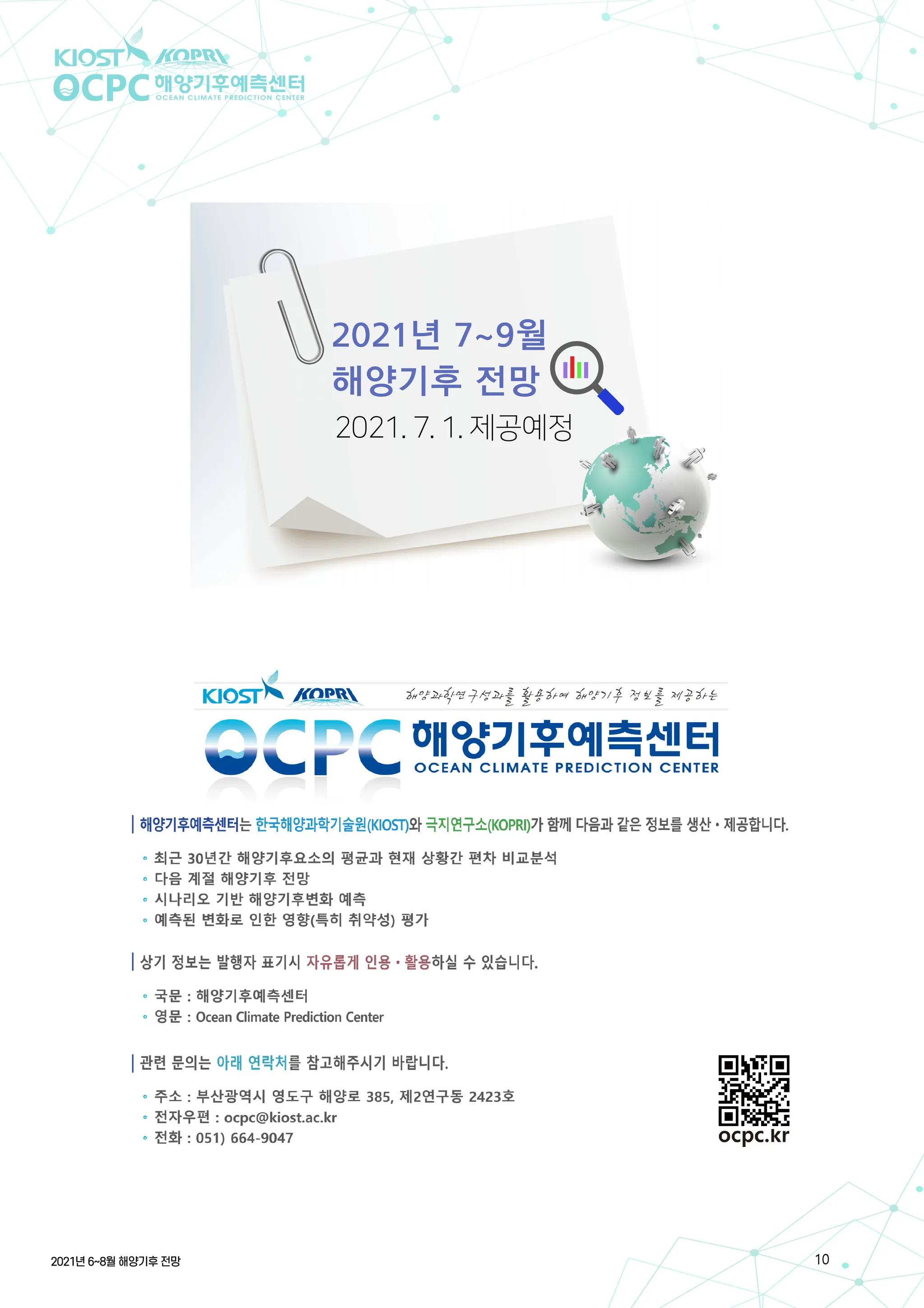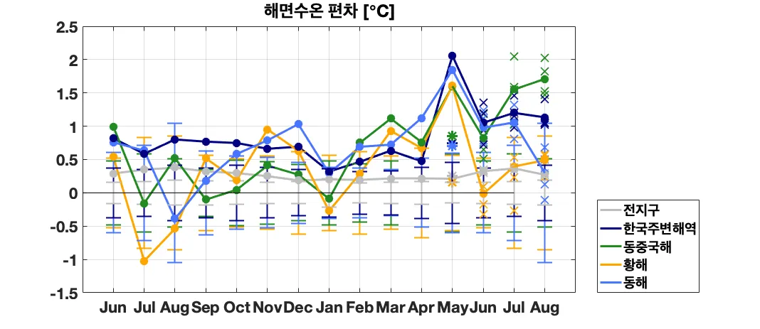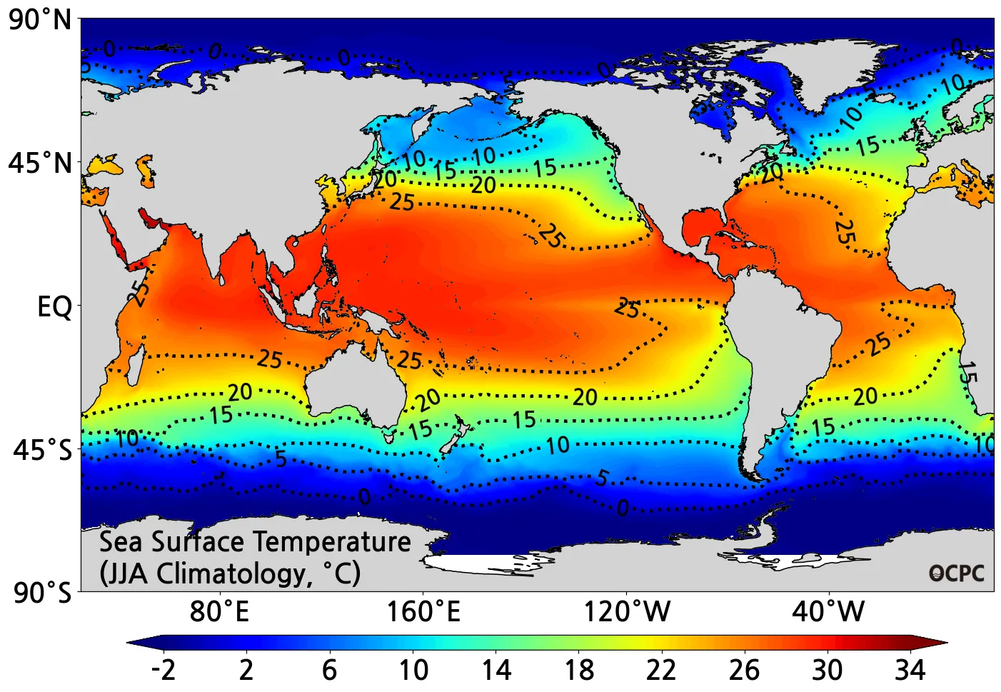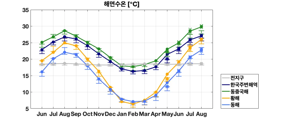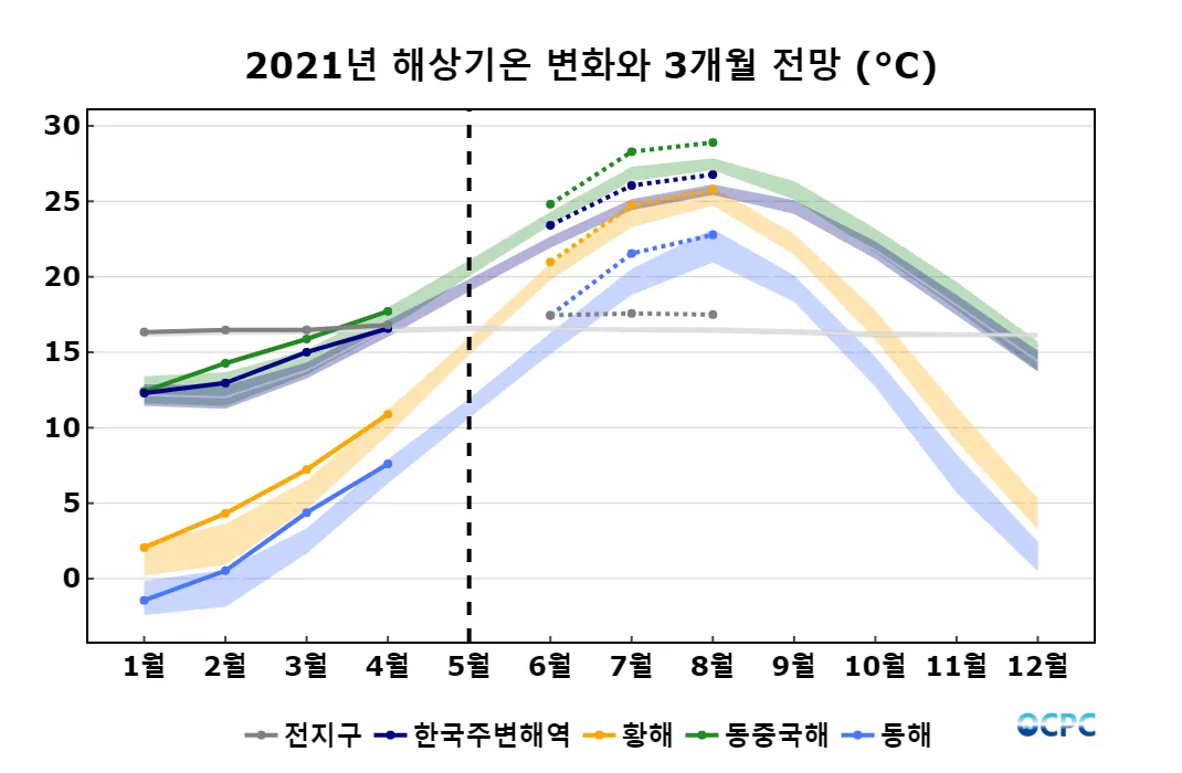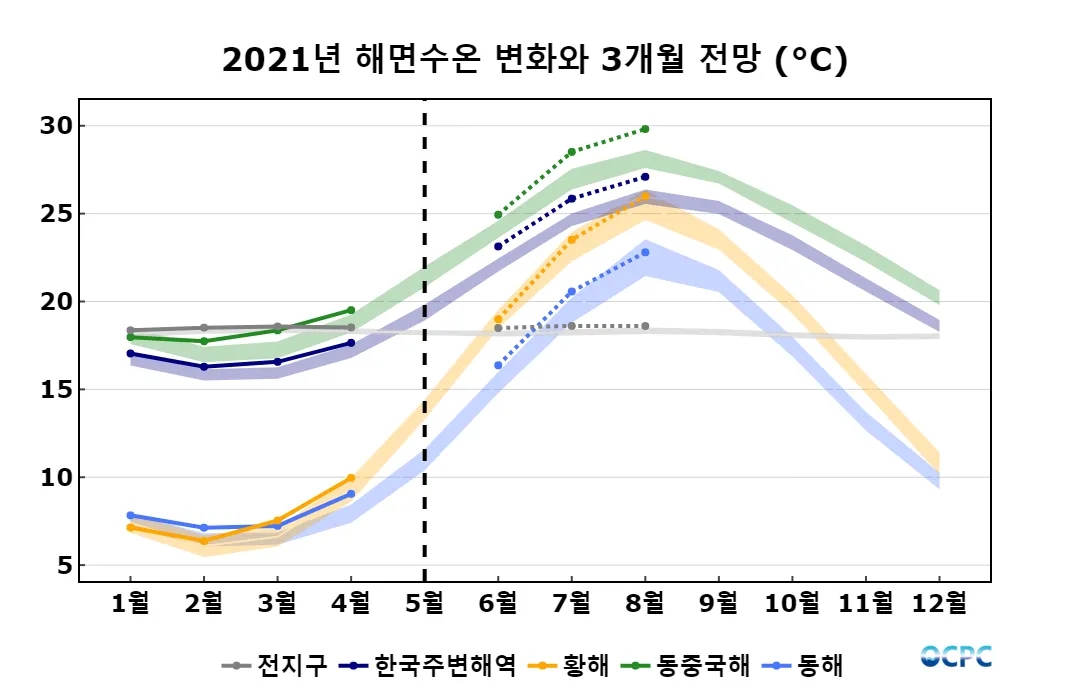 전지구 평균 및 한국주변해역의 해상기온은 평년보다 높겠습니다.