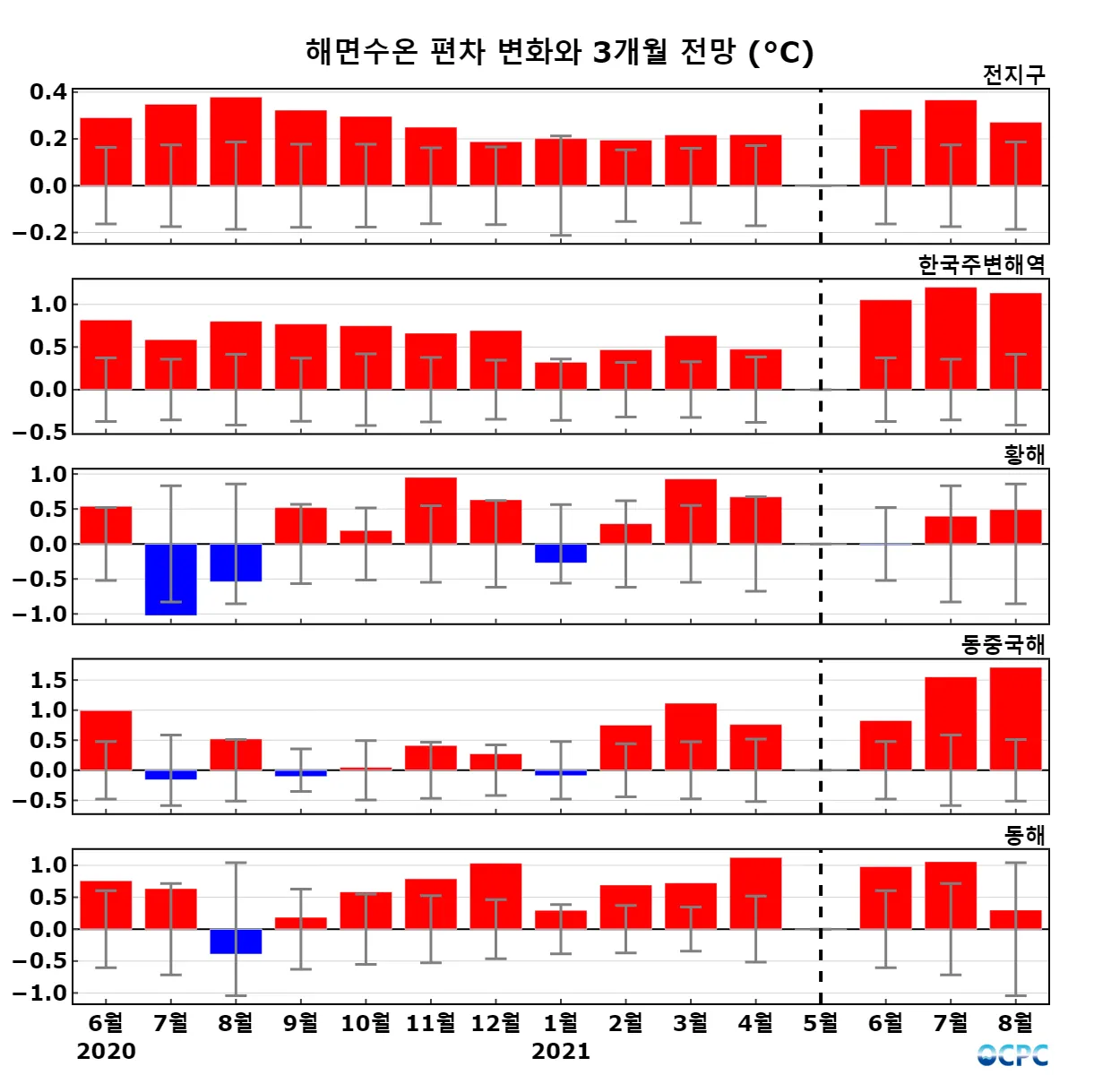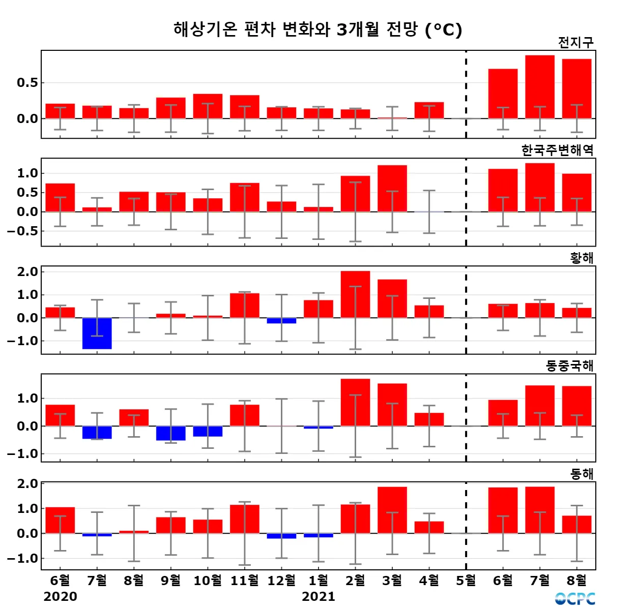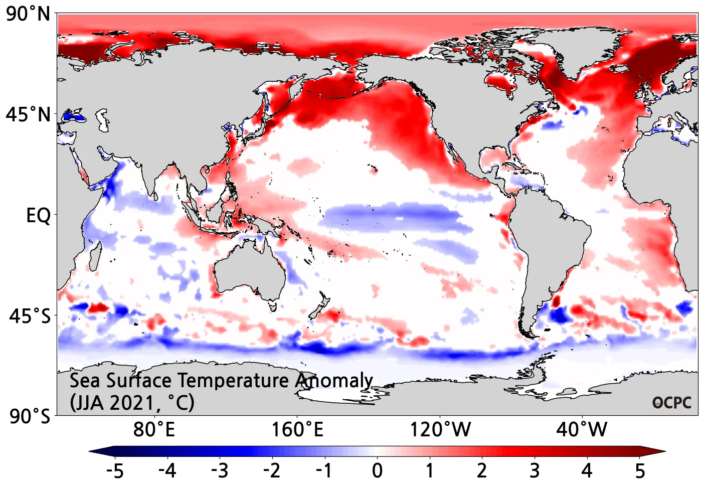 전지구 해면수온 전망(2021년 6~8월 평균)