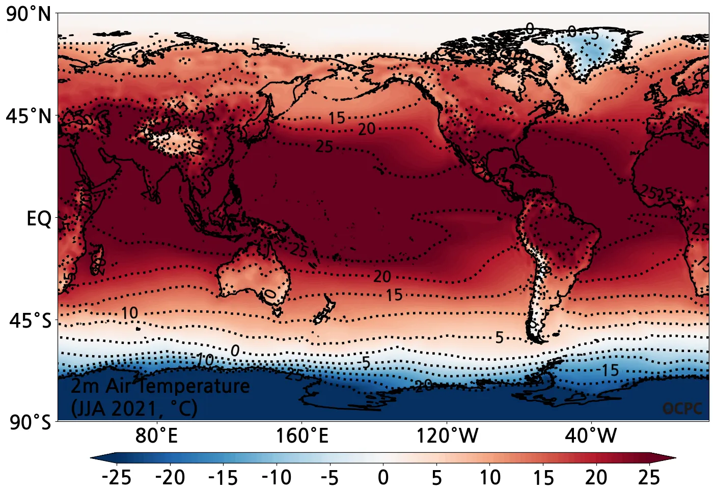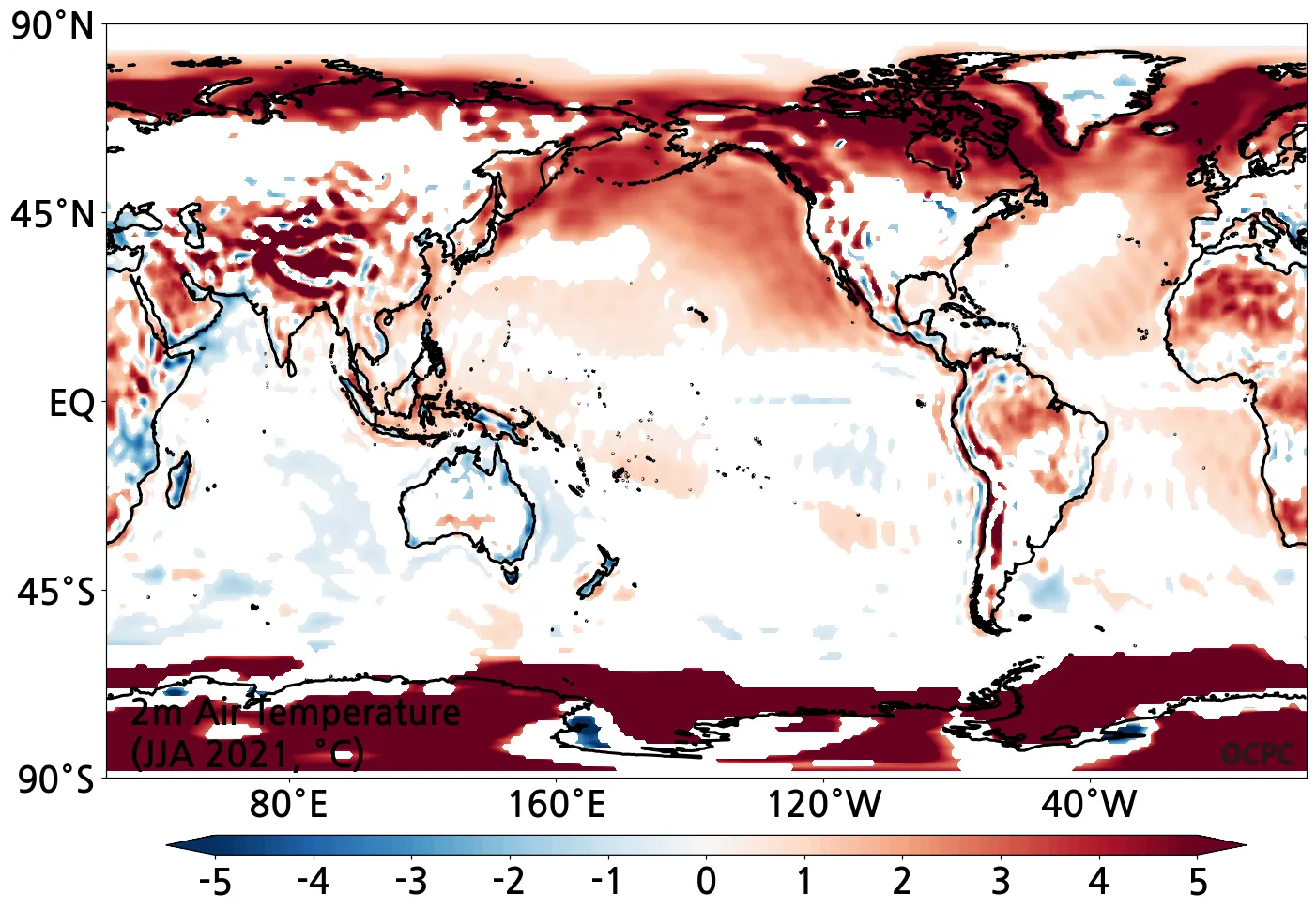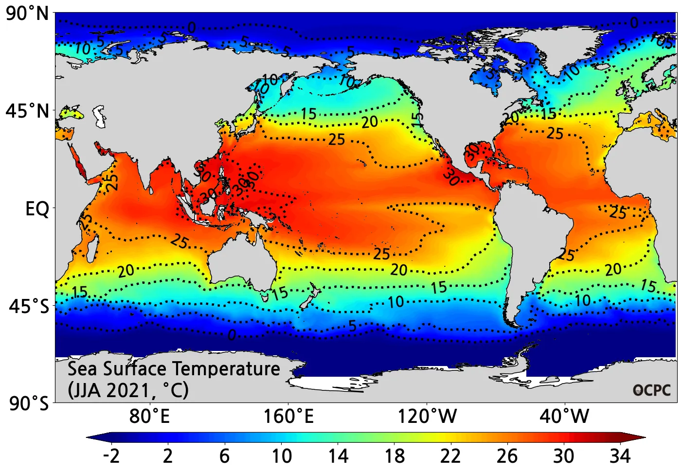 전지구 해면수온 전망(2021년 6~8월 평균)