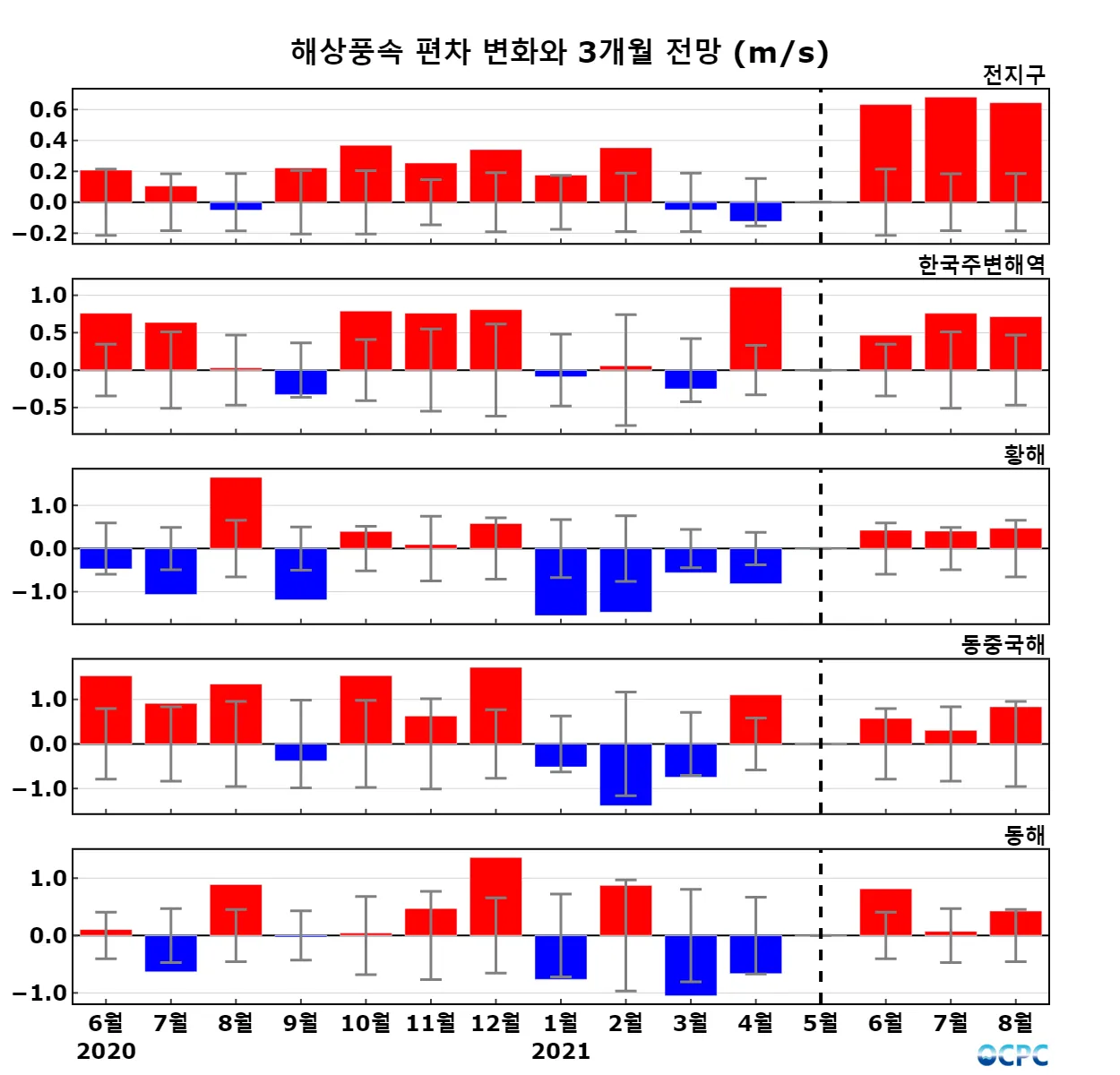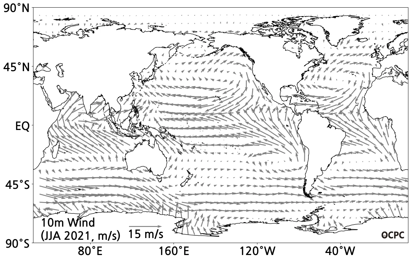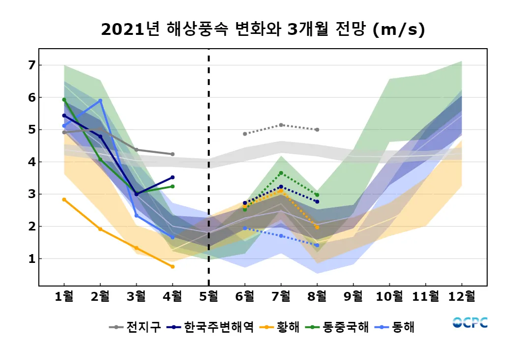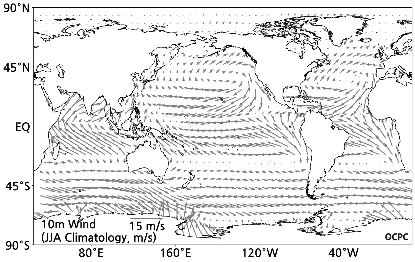 전지구 해상풍 전망(2021년 6~8월 평균)
