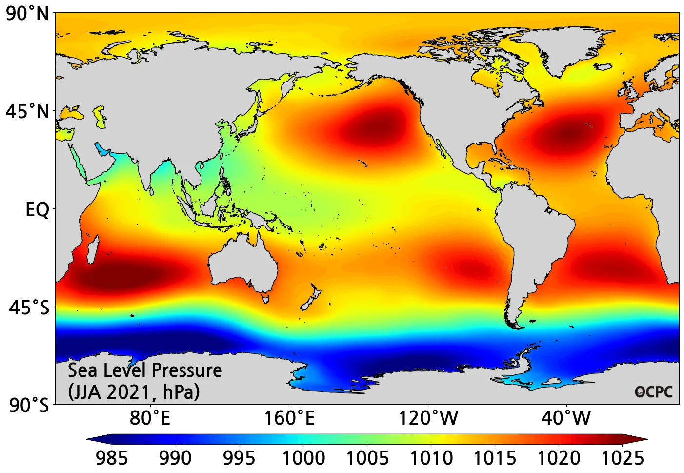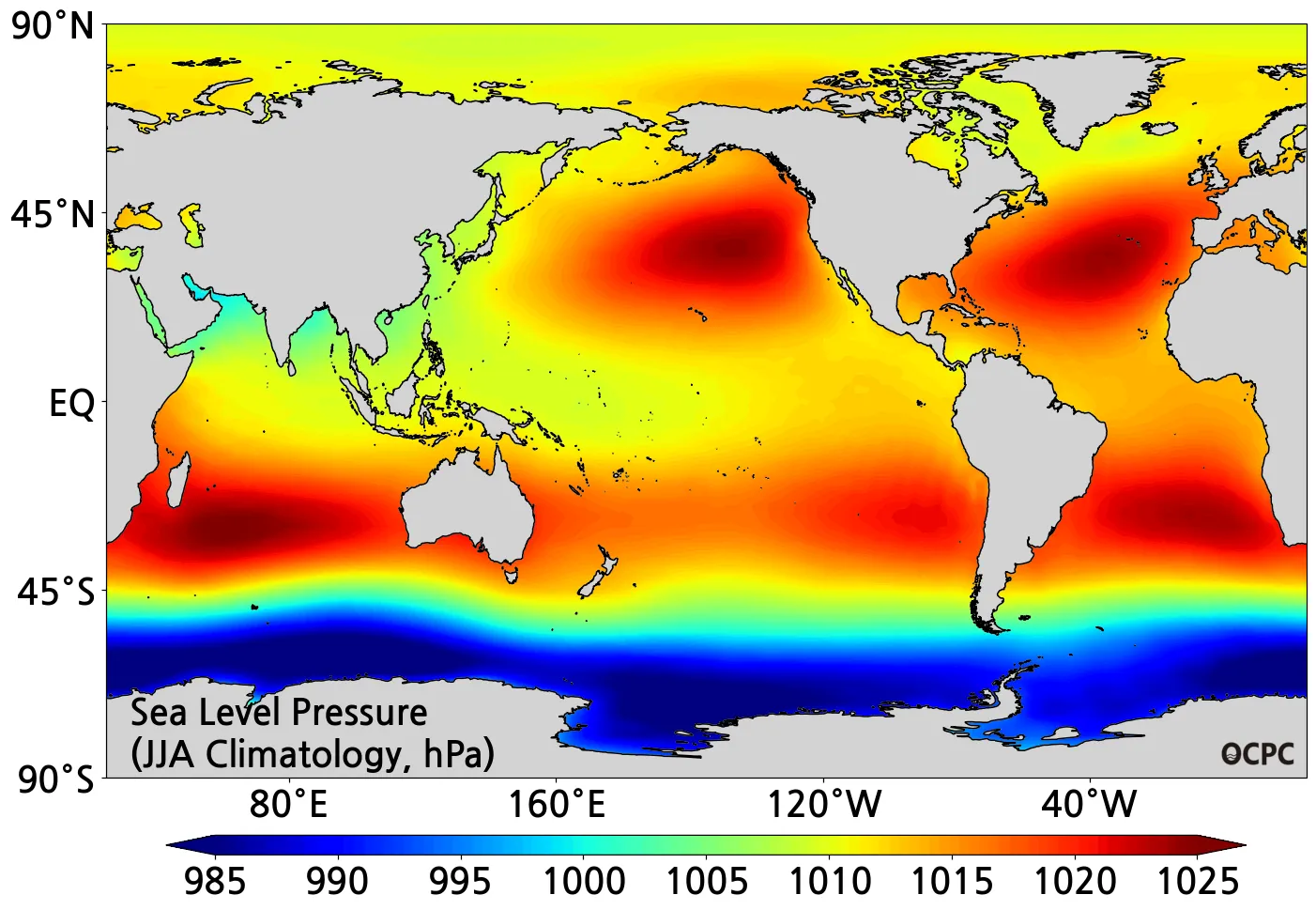 전지구 해면기압 전망(2021년 6~8월 평균)