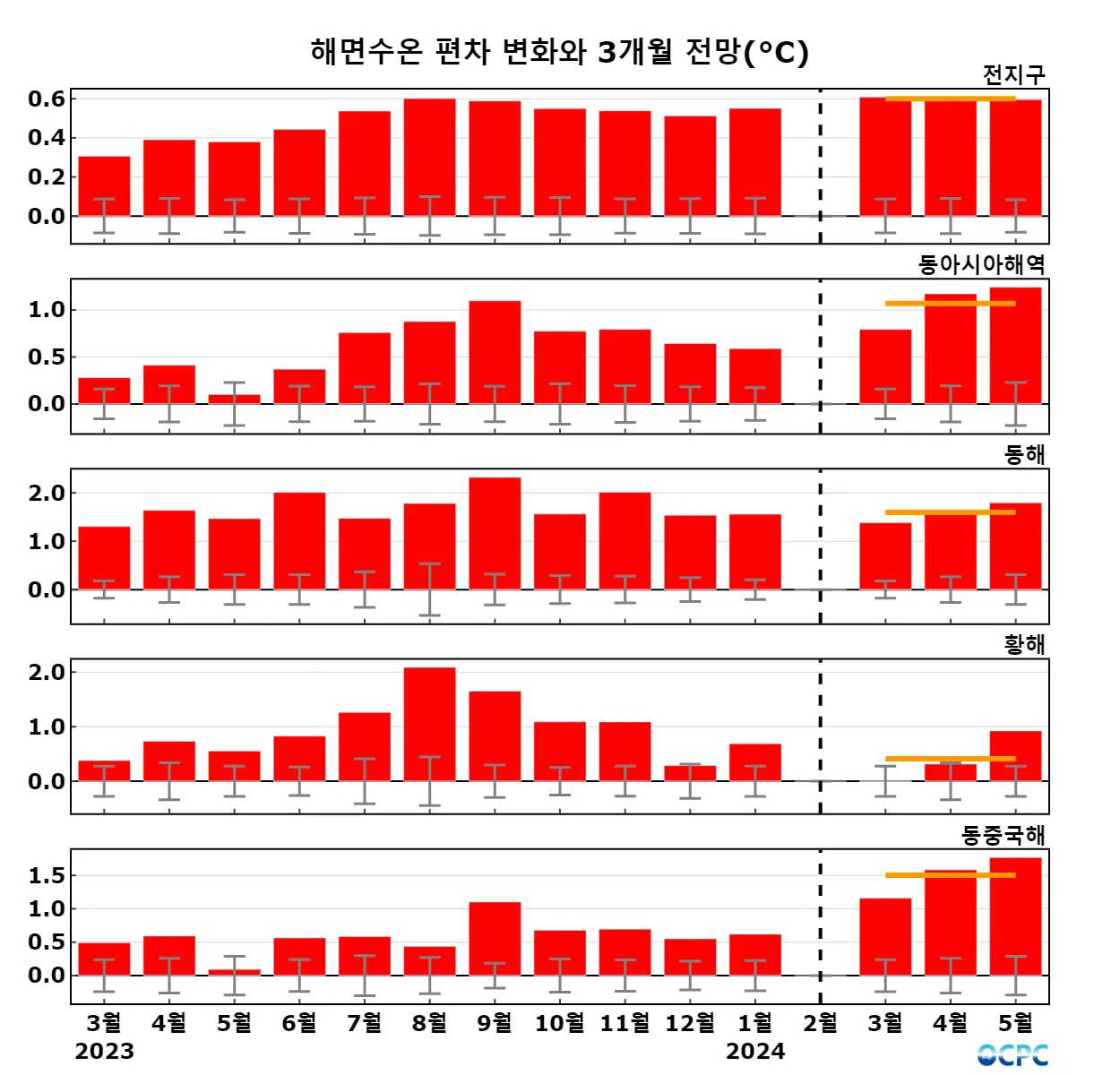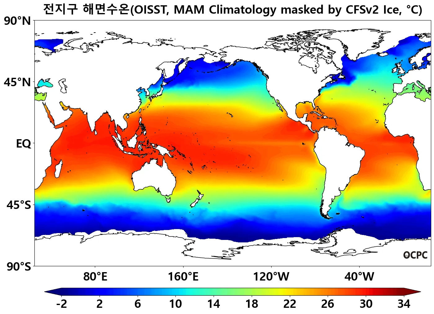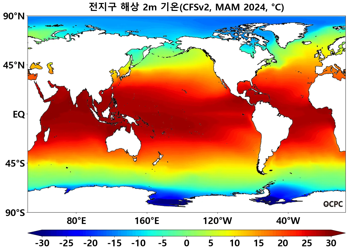 전지구 해상기온이 지난 7월 이후 평년 대비 0.5℃ 이상으로, 3~5월에도 이러한 전지구 온난화가 유지될 것으로 예상됩니다.