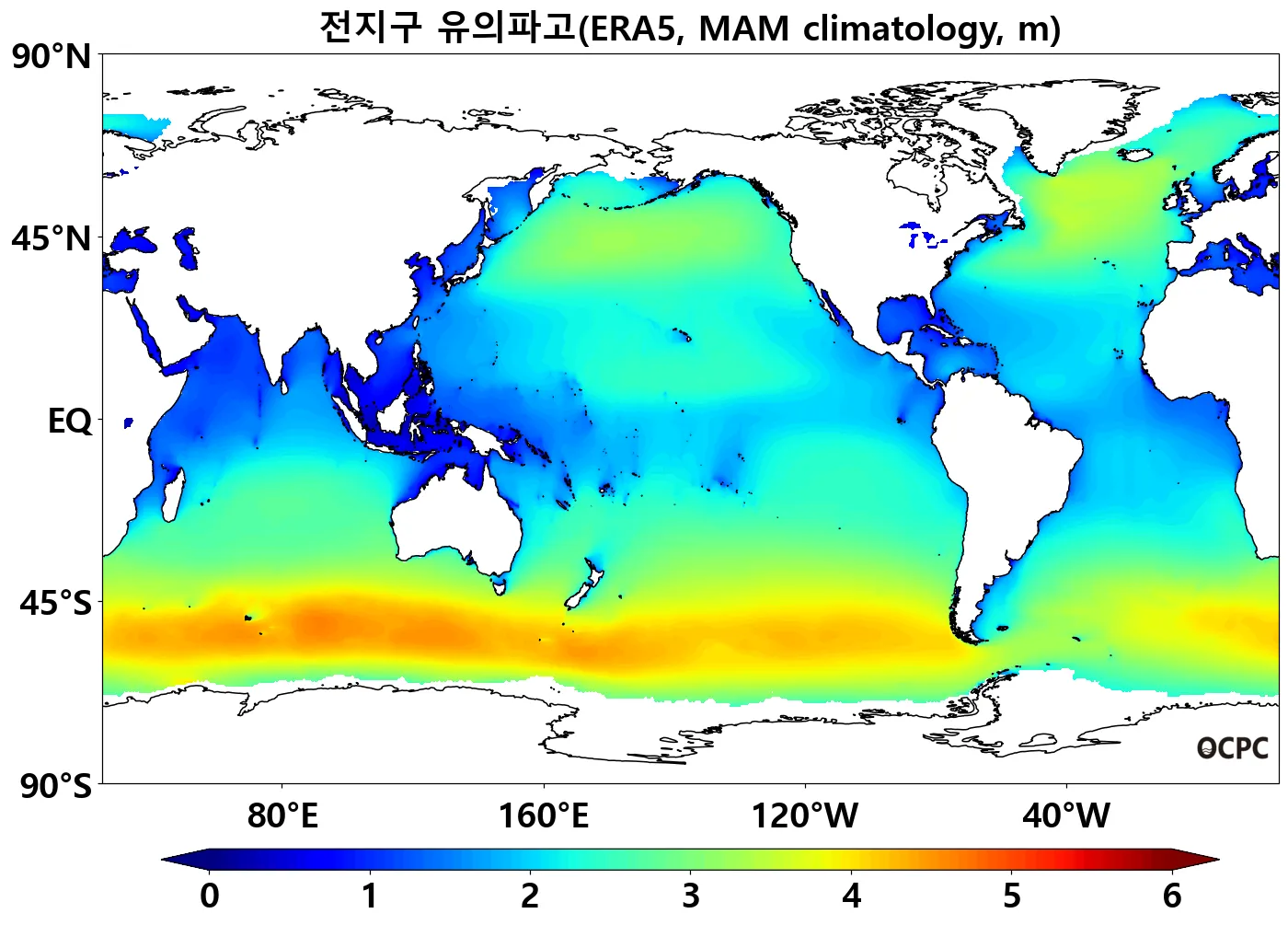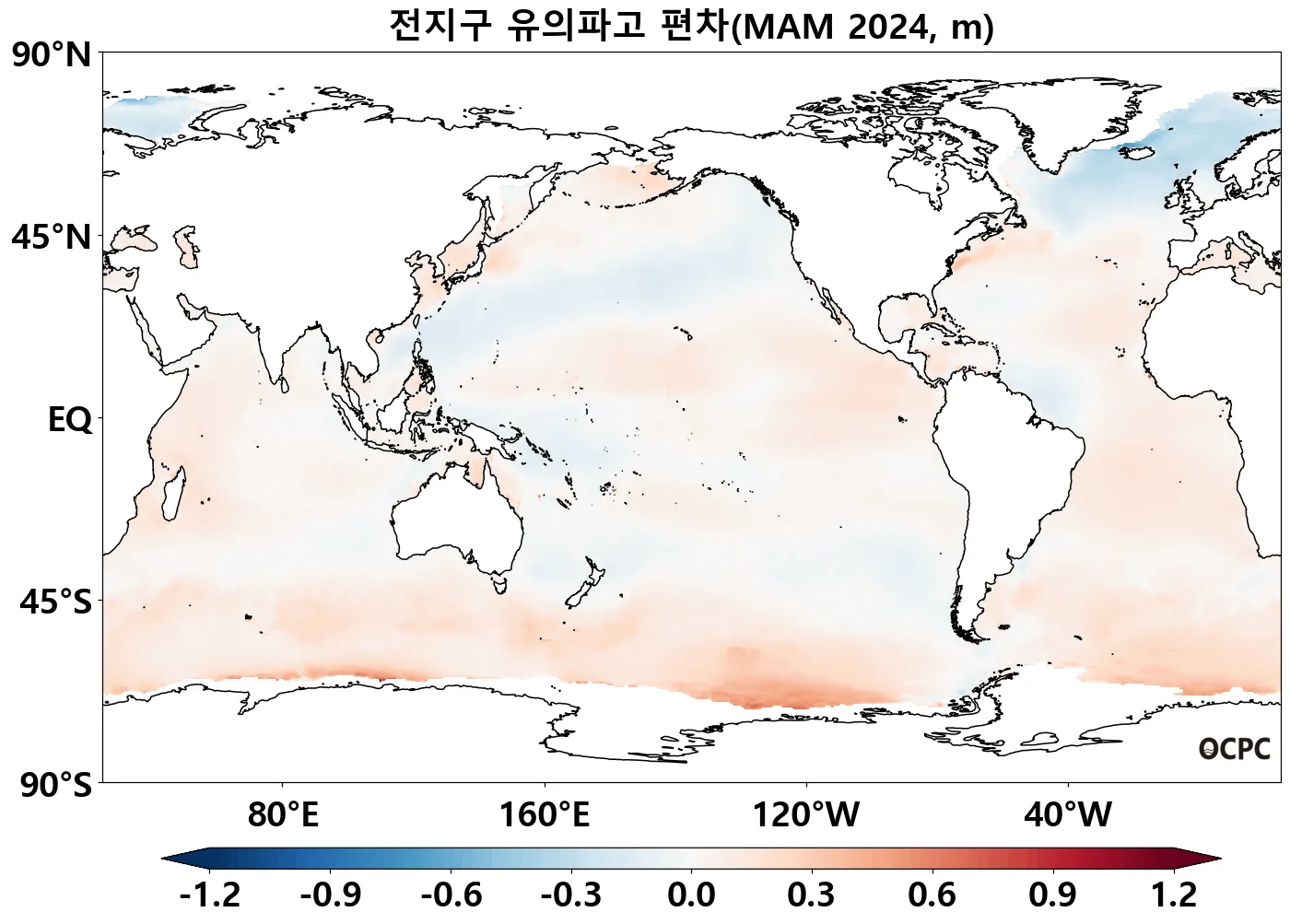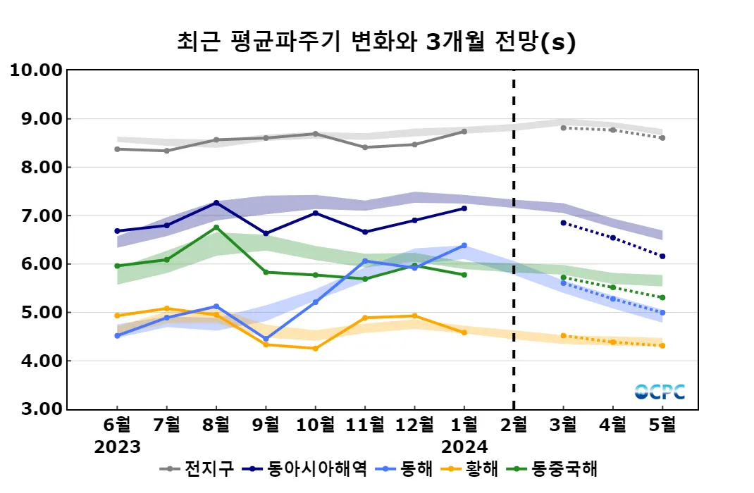 전지구 3~5월 평균파주기는 평년(8.84±0.06초)보다 0.11초 감소할 것으로 전망됩니다.