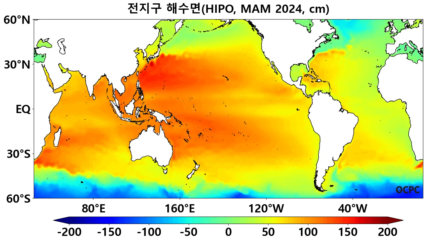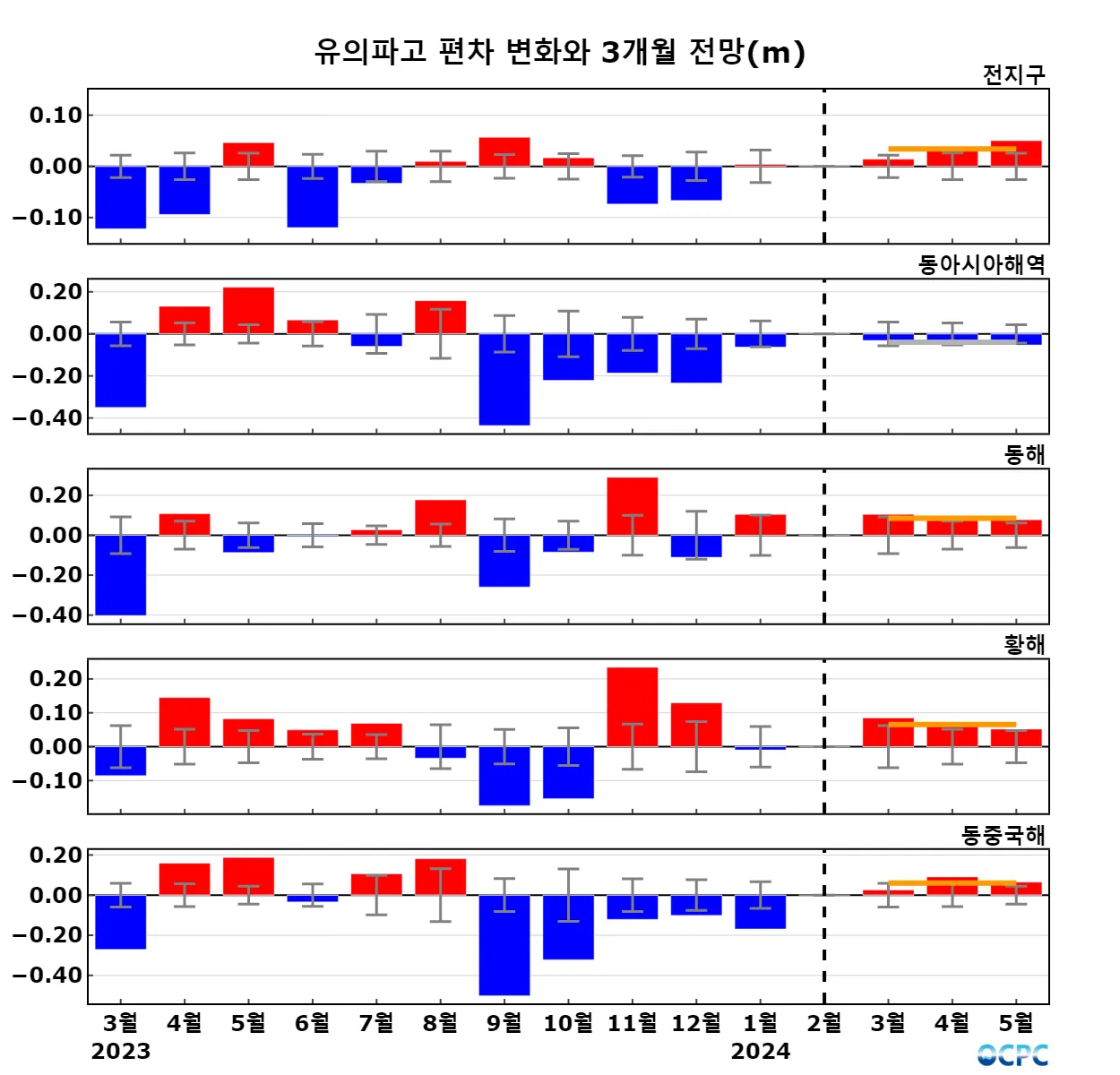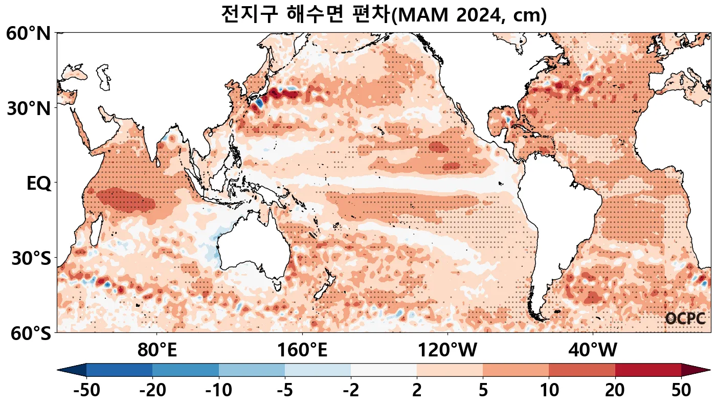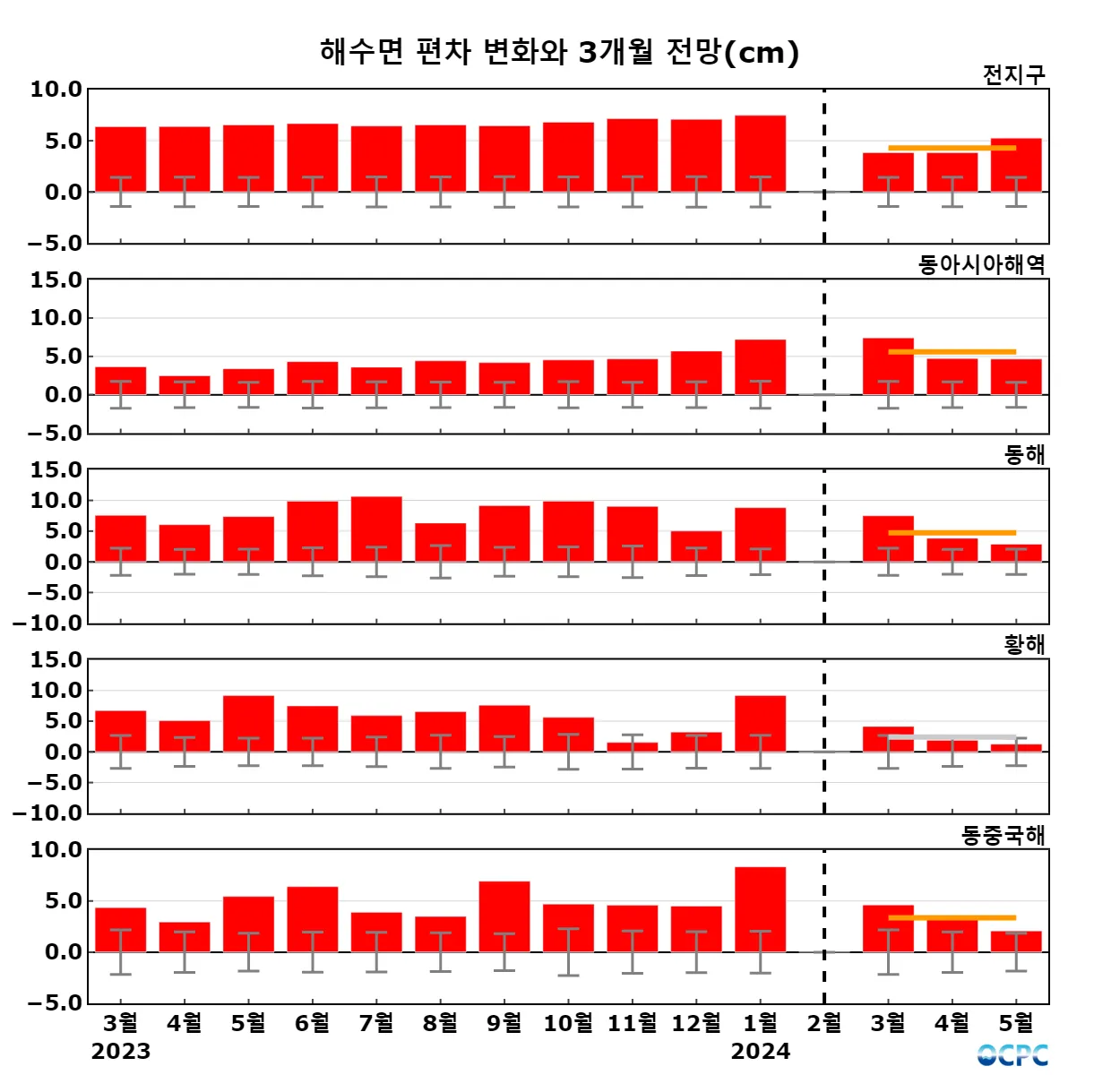 A. 전지구 해수면 전망(2024년 3월~5월 평균)