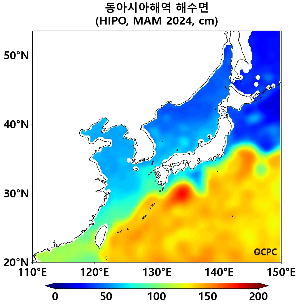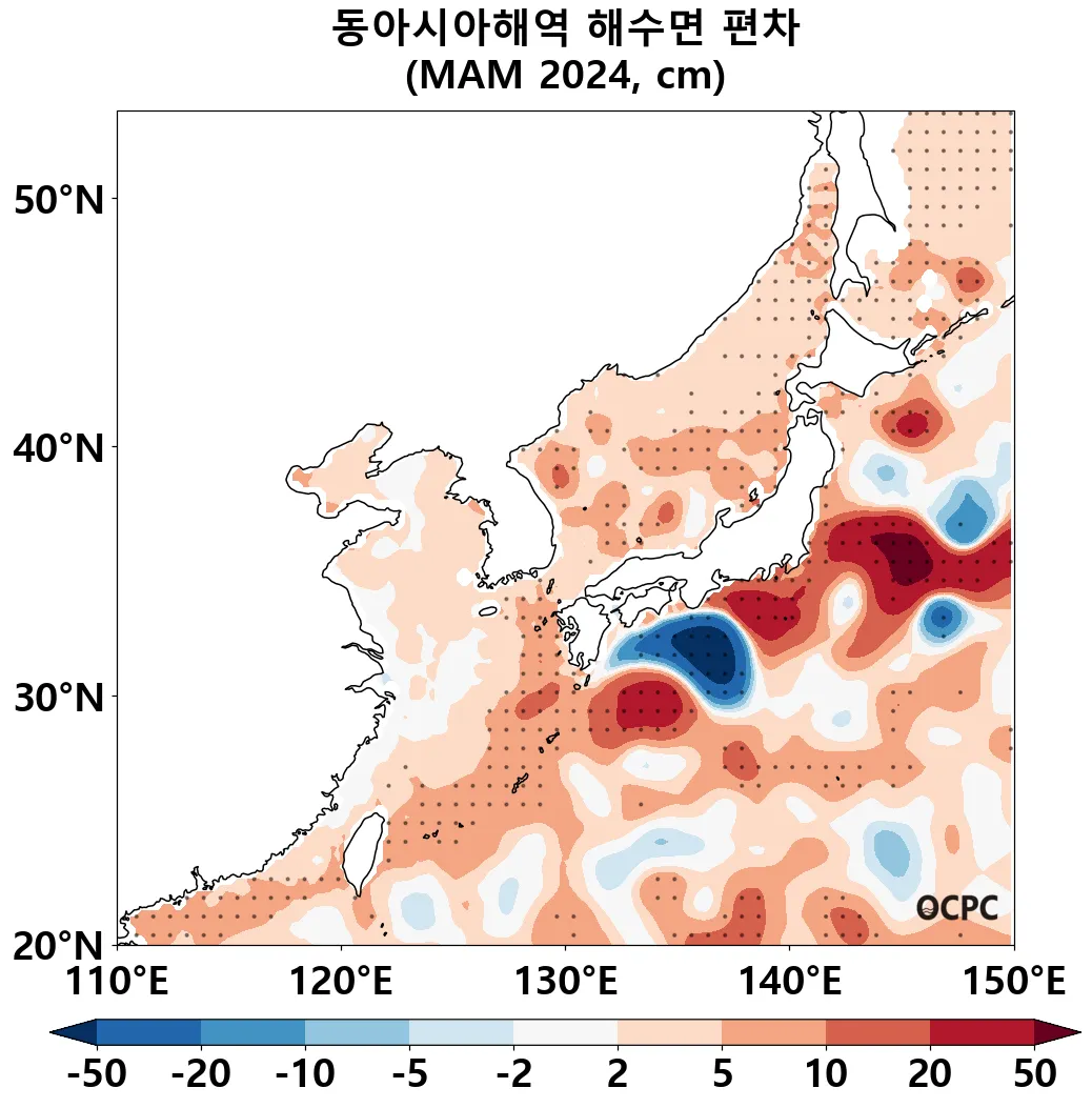 A. 동아시아해역 해수면 전망(2024년 3월~5월 평균)