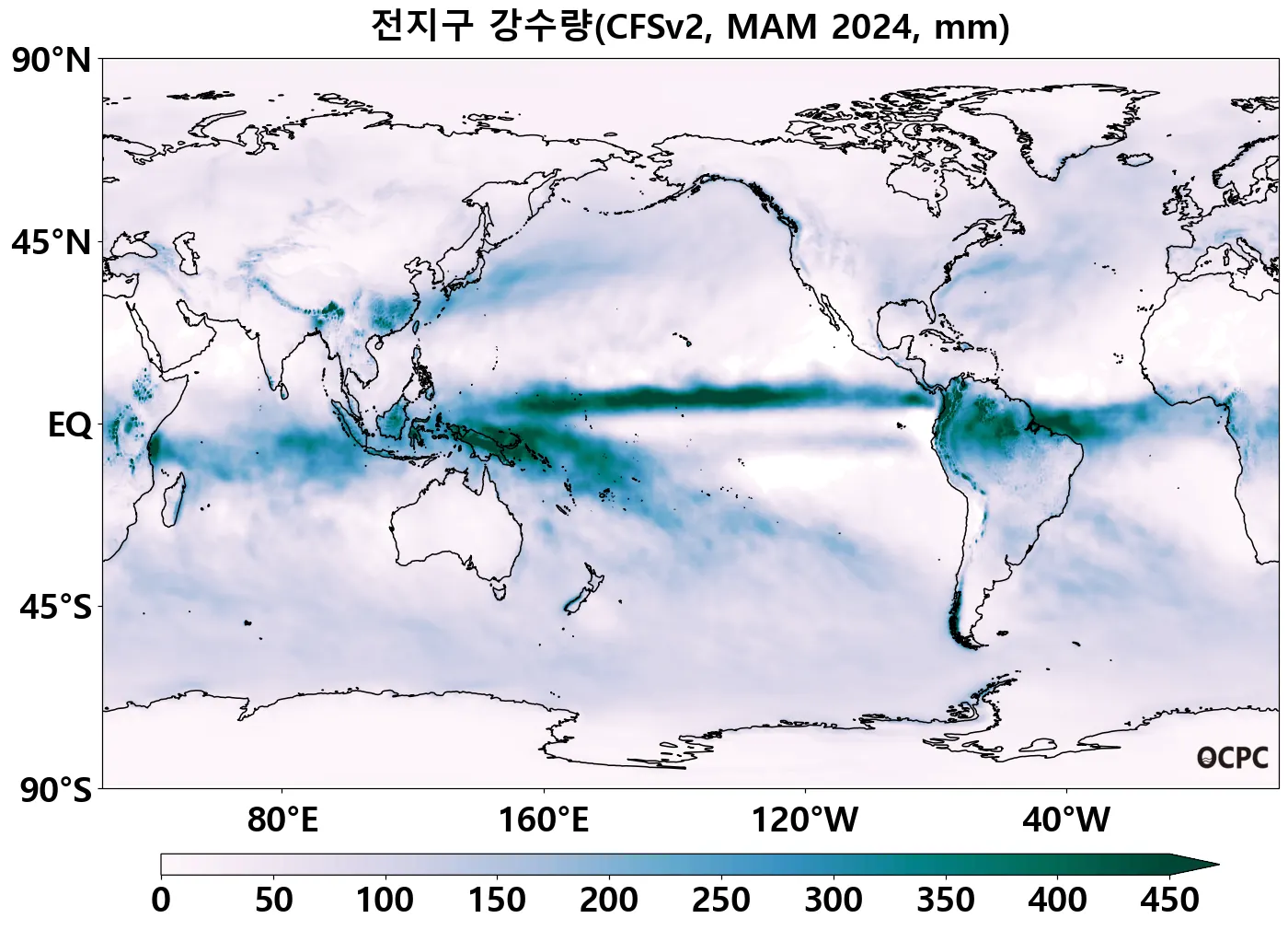 A. 전지구 강수량 전망(2024년 3월~5월 평균)