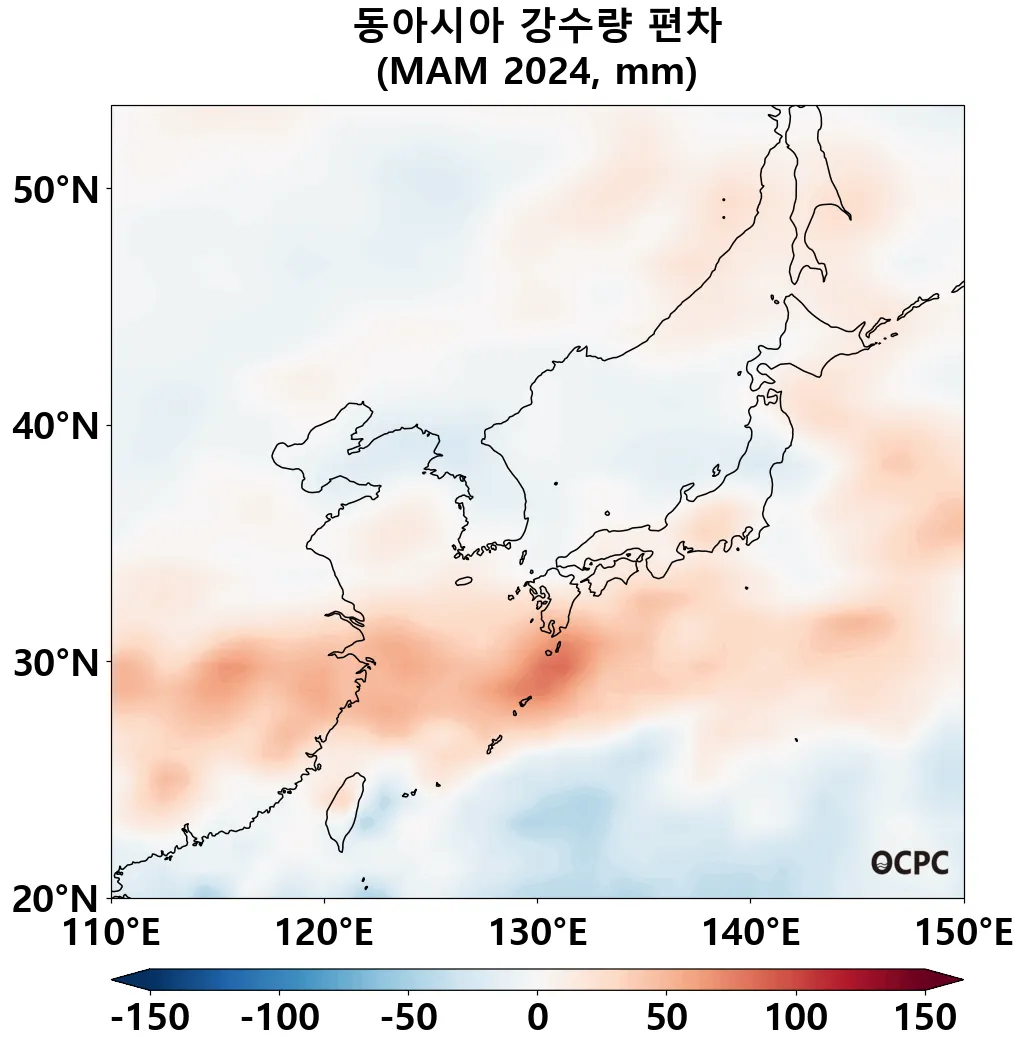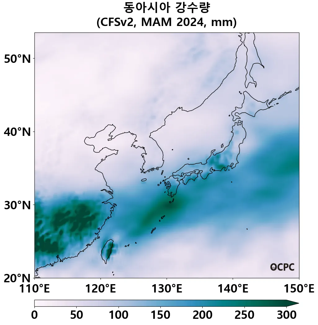 A. 동아시아 강수량 전망(2024년 3월~5월 평균)