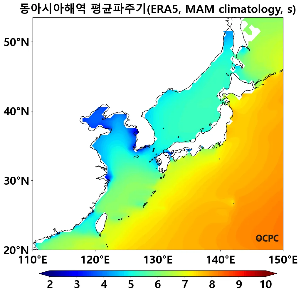 B. 동아시아해역 평균파주기(평년 3월~5월 평균)