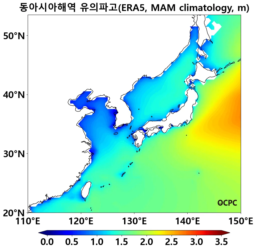 B. 동아시아해역 유의파고(평년 3월~5월 평균)