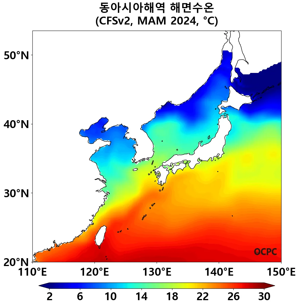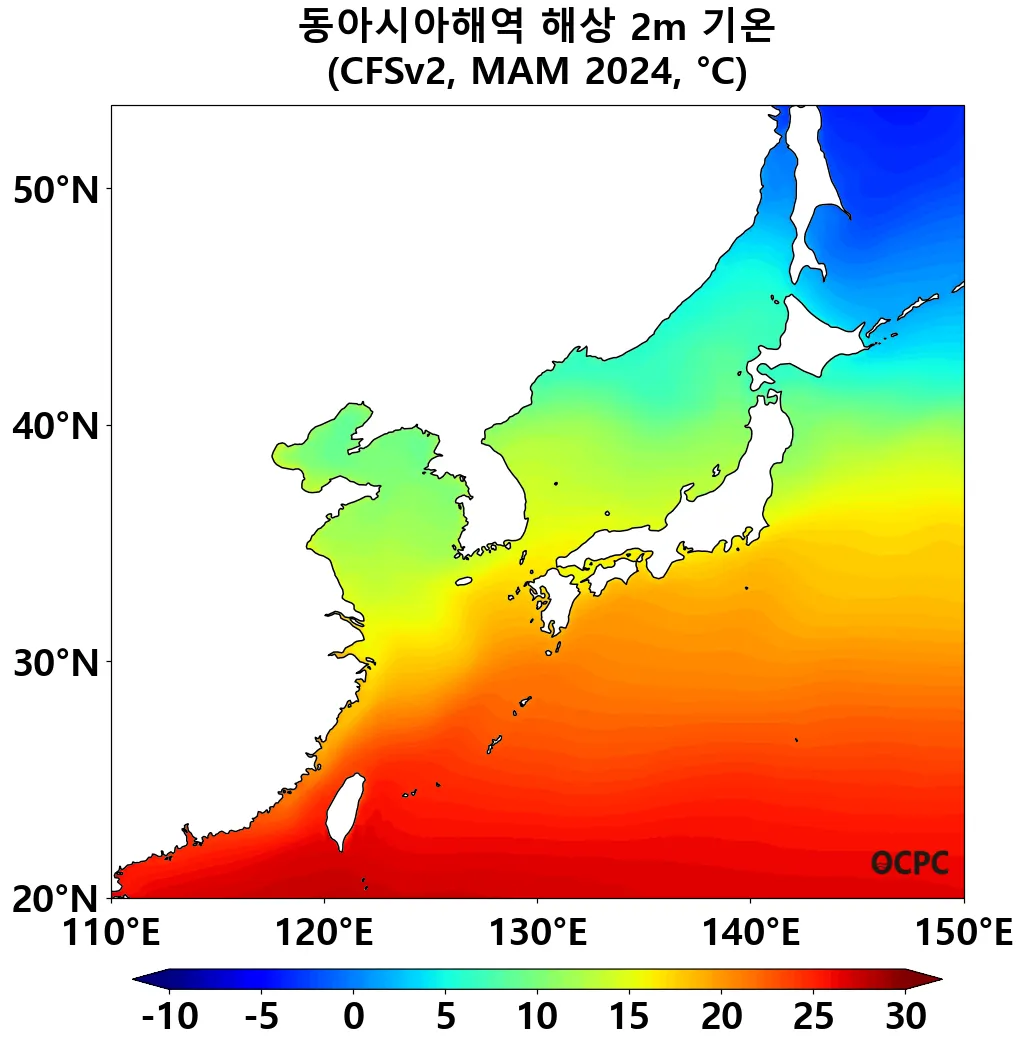 A. 동아시아해역 해상기온 전망(2024년 3월~5월 평균)
