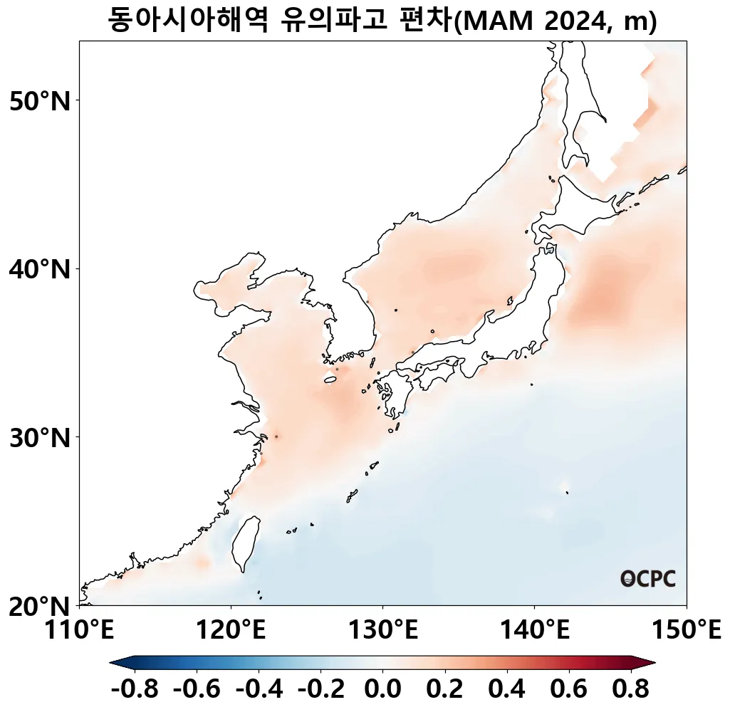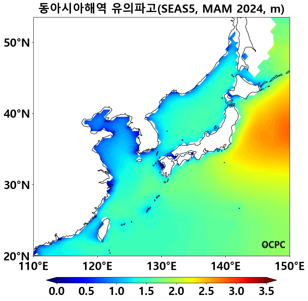A. 동아시아해역 유의파고 전망(2024년 3월~5월 평균)